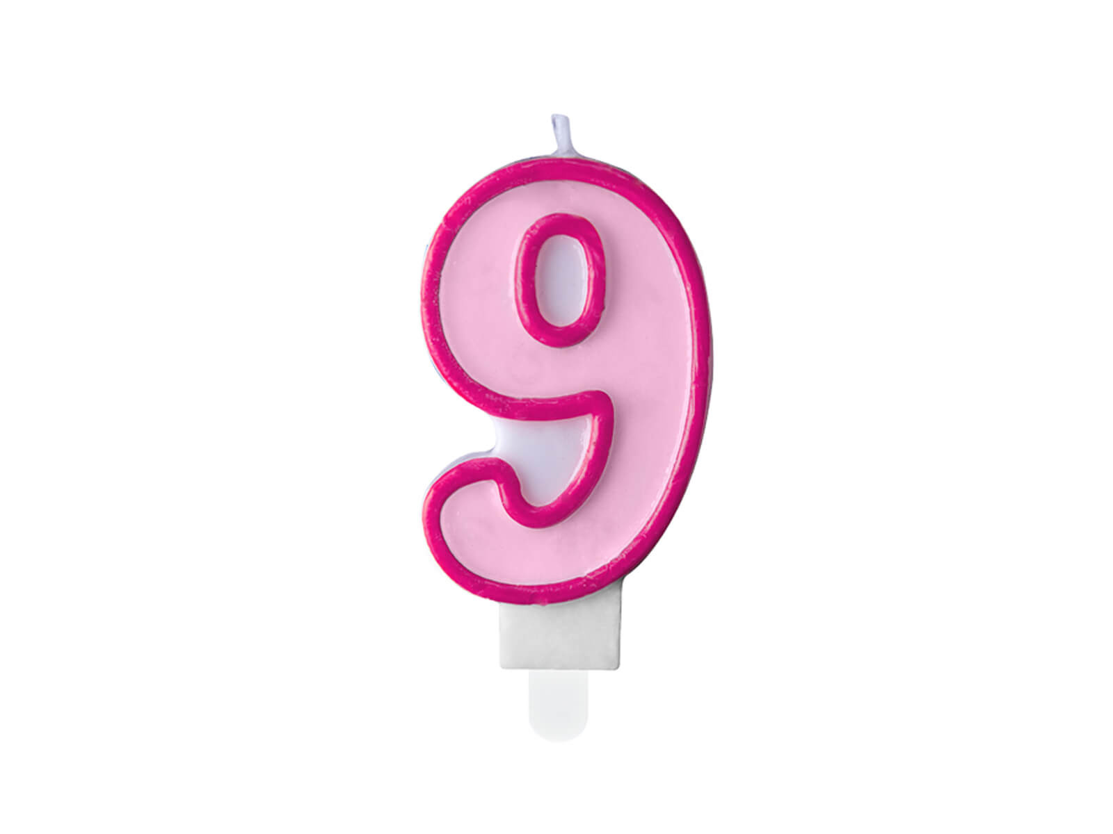 • Születésnapi gyertya kilences számú "9" rózsaszínben. Ideális egy gyermek születésnapjára.