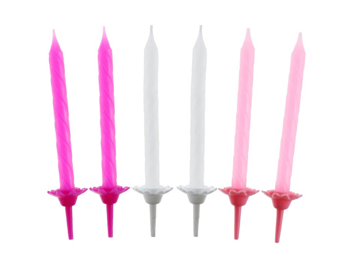 Születésnapi gyertyák világos rózsaszín, sötét rózsaszín és fehér - 24 db.