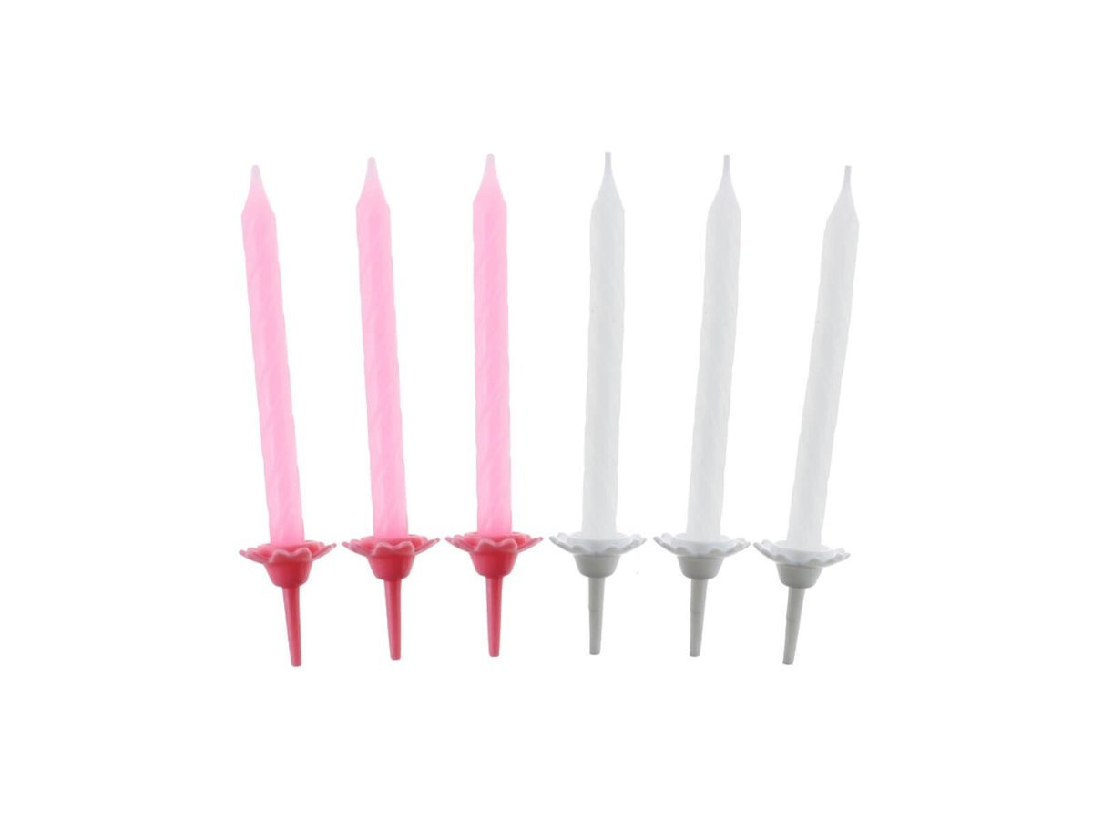 Születésnapi gyertyák világos rózsaszín és fehér - 24 db.