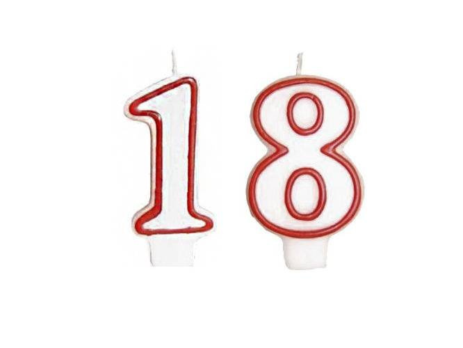 Számgyertyák piros peremmel - 18 - tizennyolc - 2 db.
