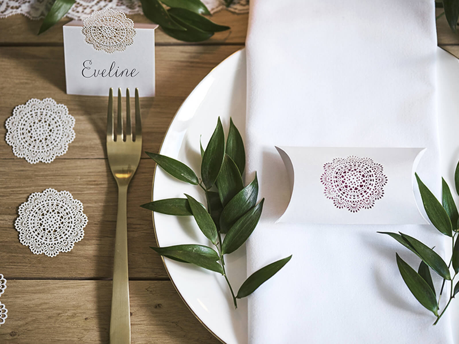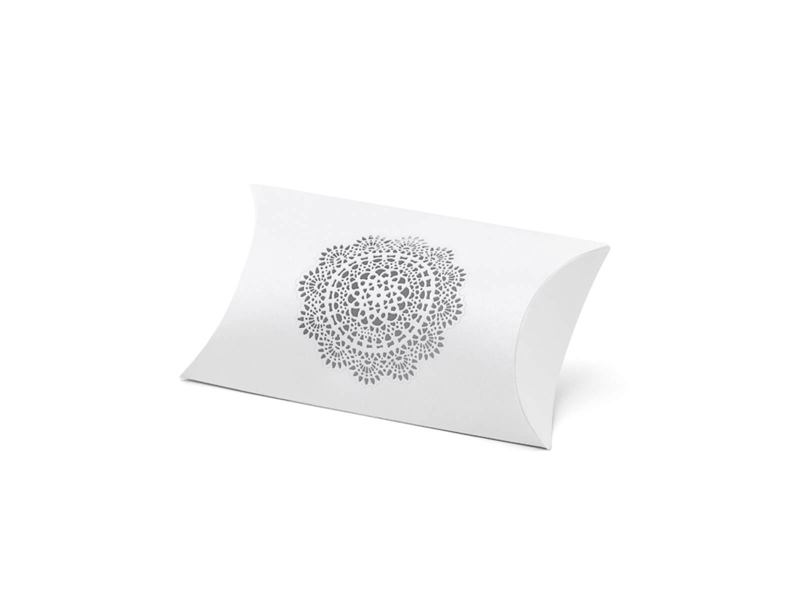 • Papírdobozok esküvői vendégeknek gyöngyházfehérben díszítéssel.