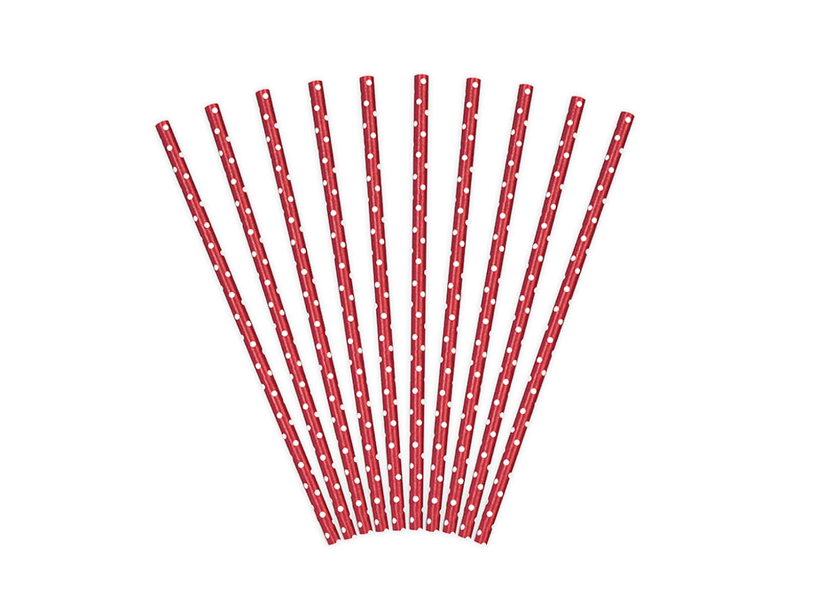 Piros cső szívószál fehér pöttyökkel - 10 db.