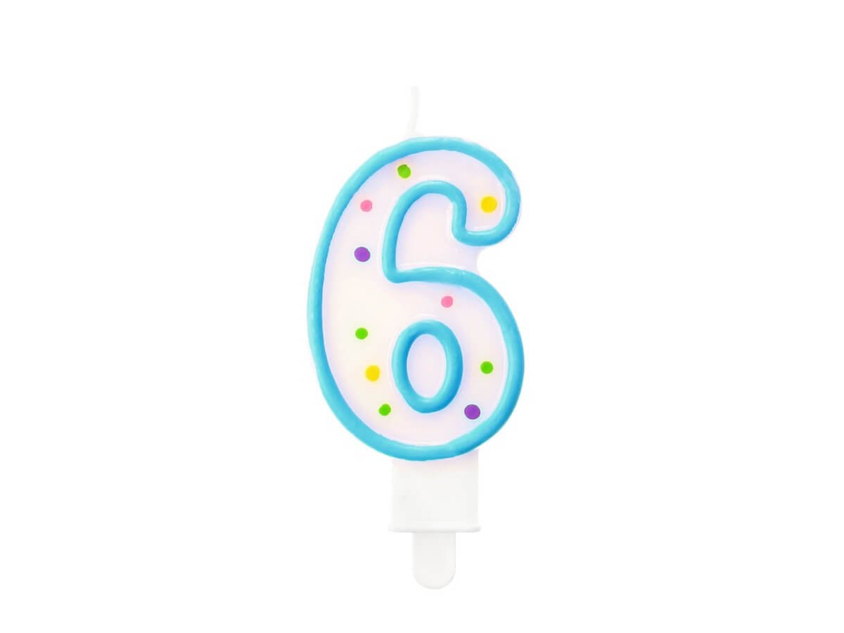 Hatos számú gyertya pöttyökkel - 1 db.