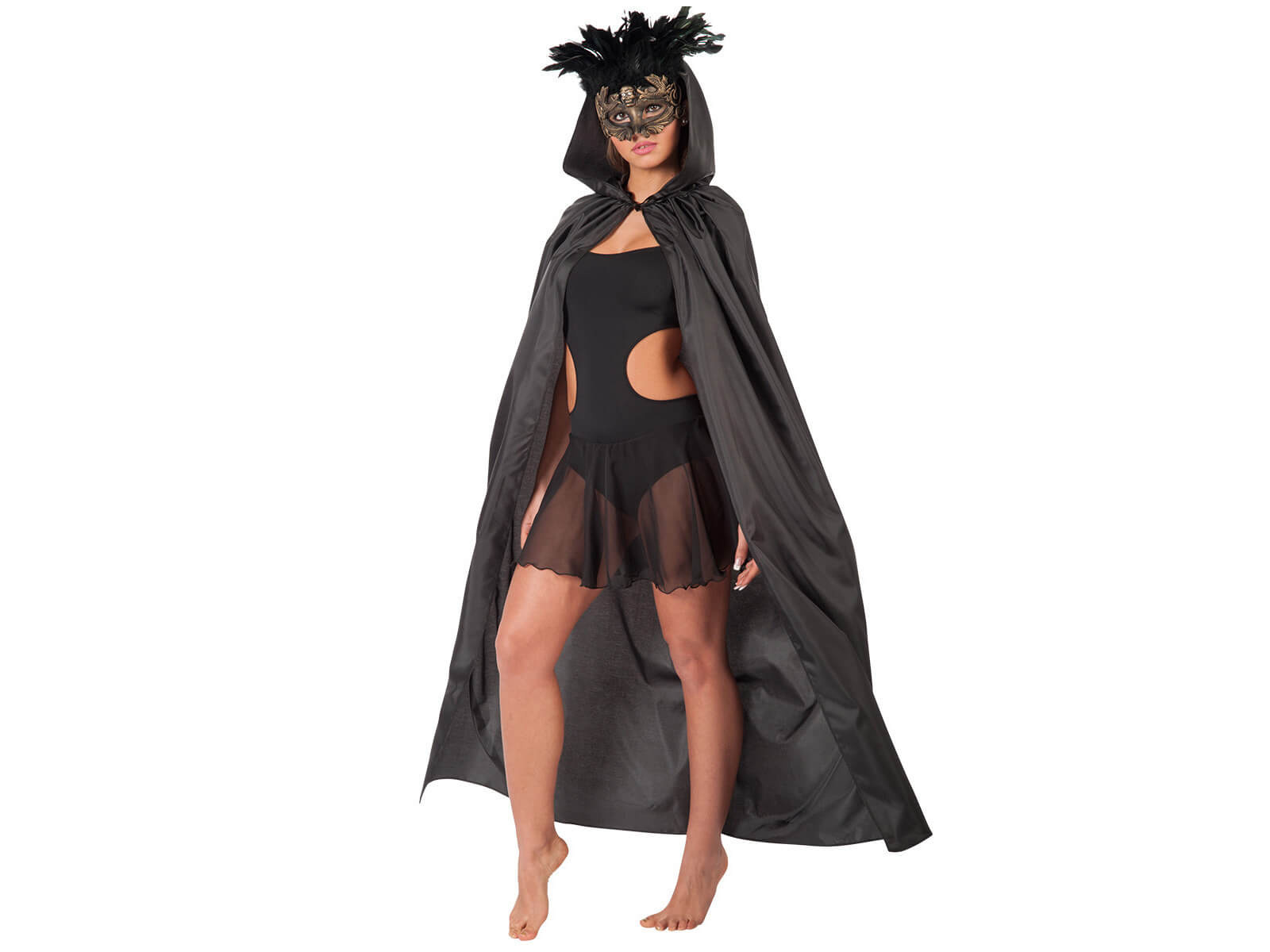 Bemutatja Fekete köpeny kapucnival, ideális különböző alkalmakra! Kiváló minőségű anyagokból készült, kényelmet biztosít és jól illeszkedik a különböző ruhákhoz. A köpeny hossza 140 cm, így felnőttek számára is kiválóan alkalmas. Akár farsangi, halloweeni vagy színházi jelmezhez keres kiegészítést, ez a köpeny tökéletesen működik.