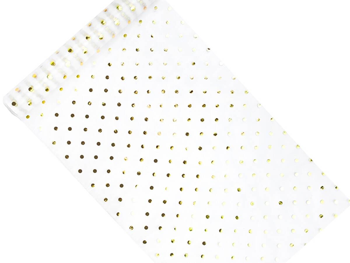 Fehér organza arany pöttyökkel - 36 cm x 9 m.