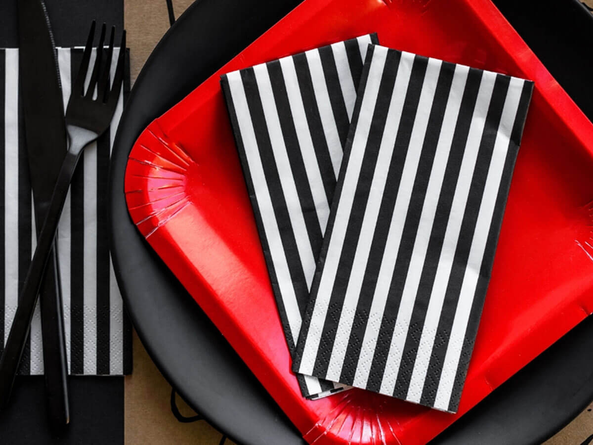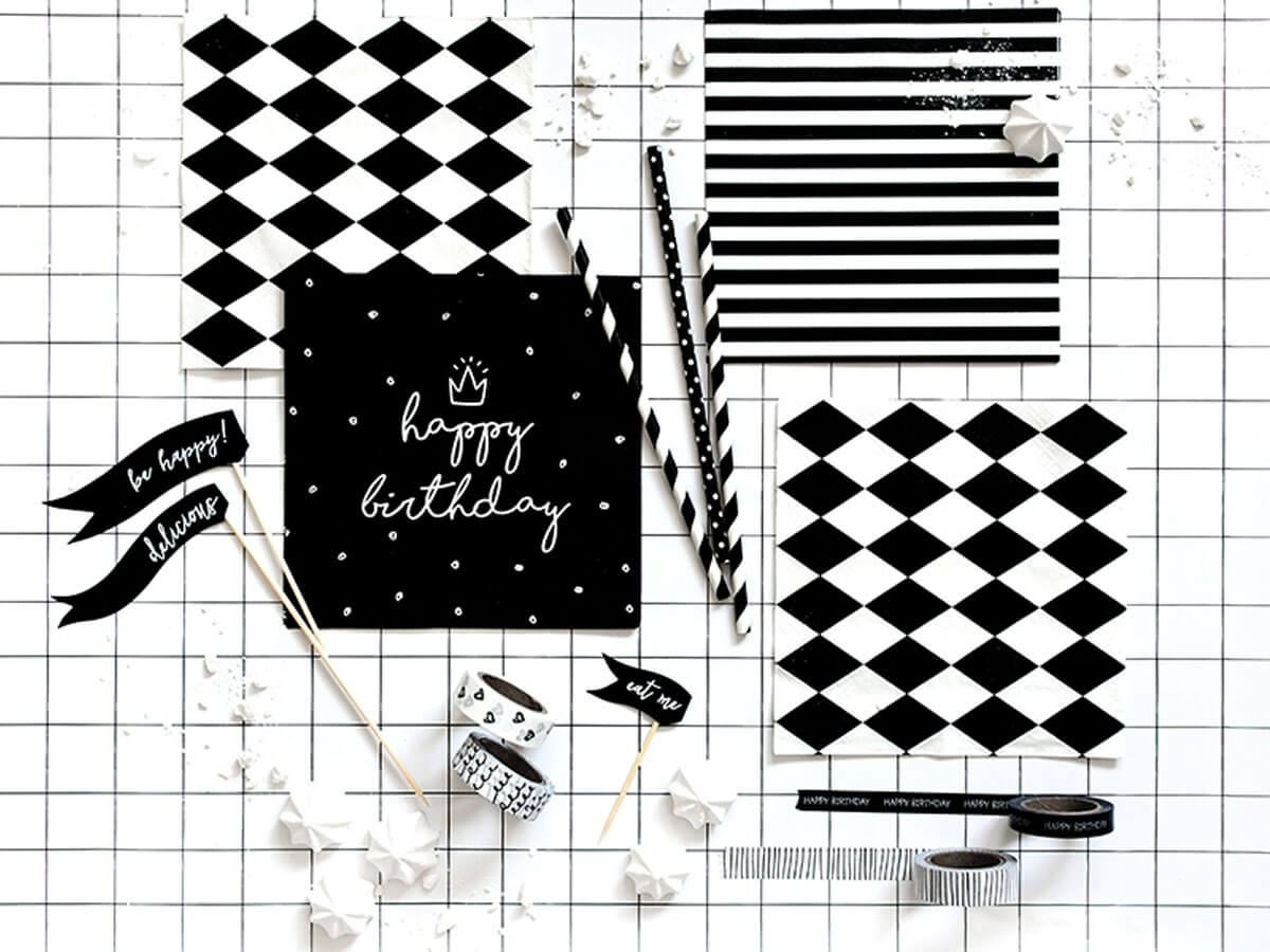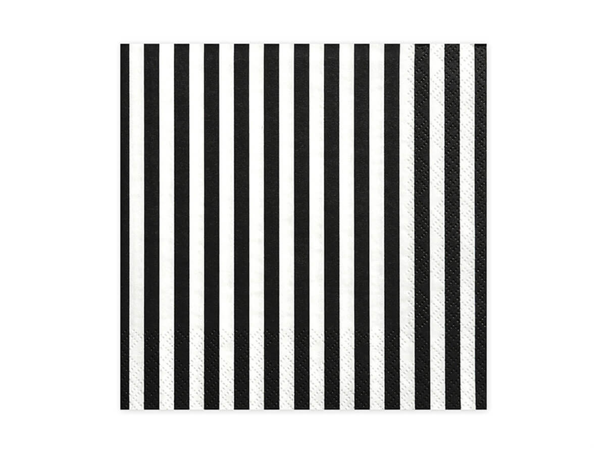 Fehér születésnapi szalvéta fekete csíkokkal - 33 cm - 20 db.