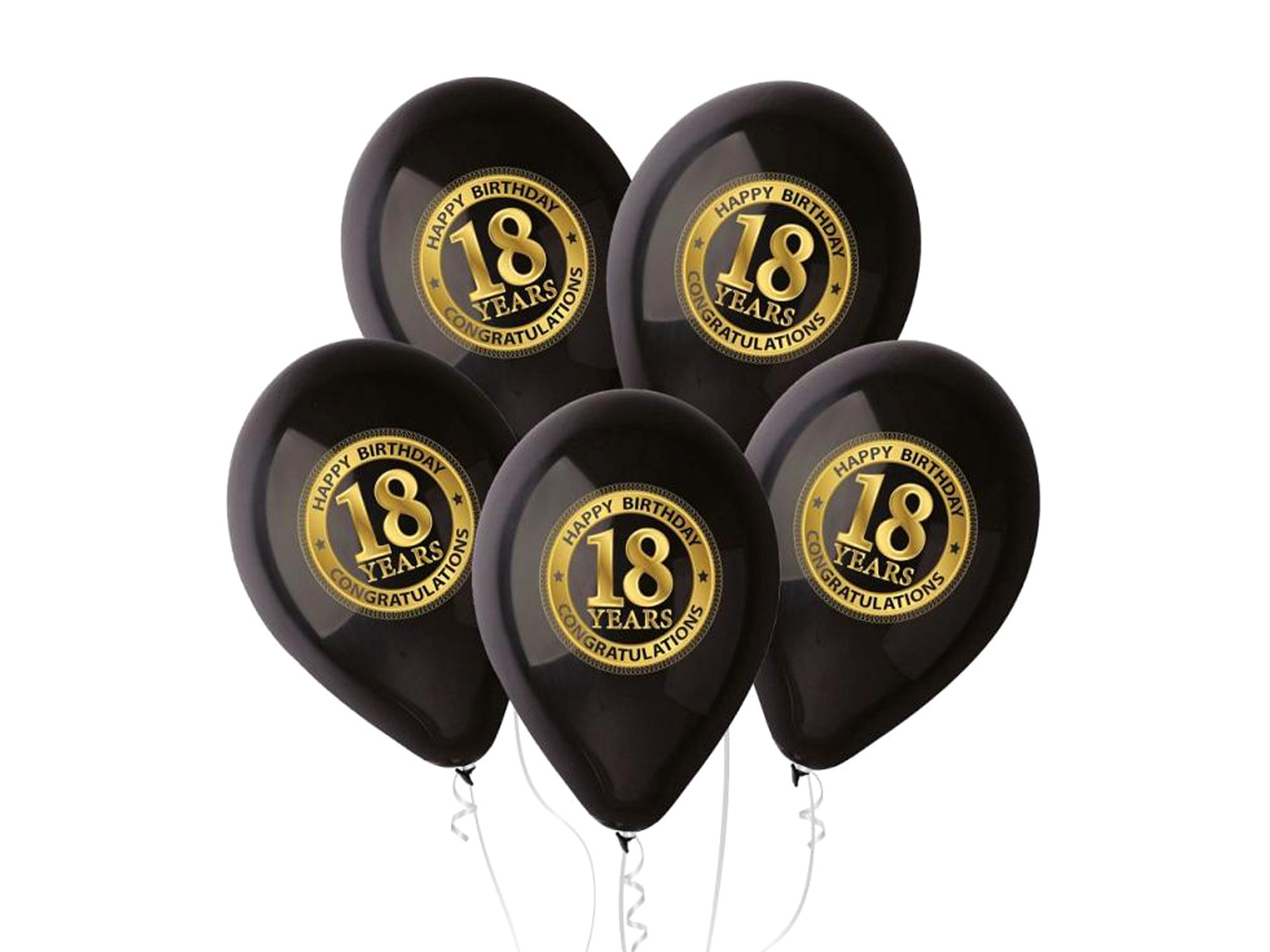 Nyomtatott latex lufi "18" fekete - 30 cm - 5 db.