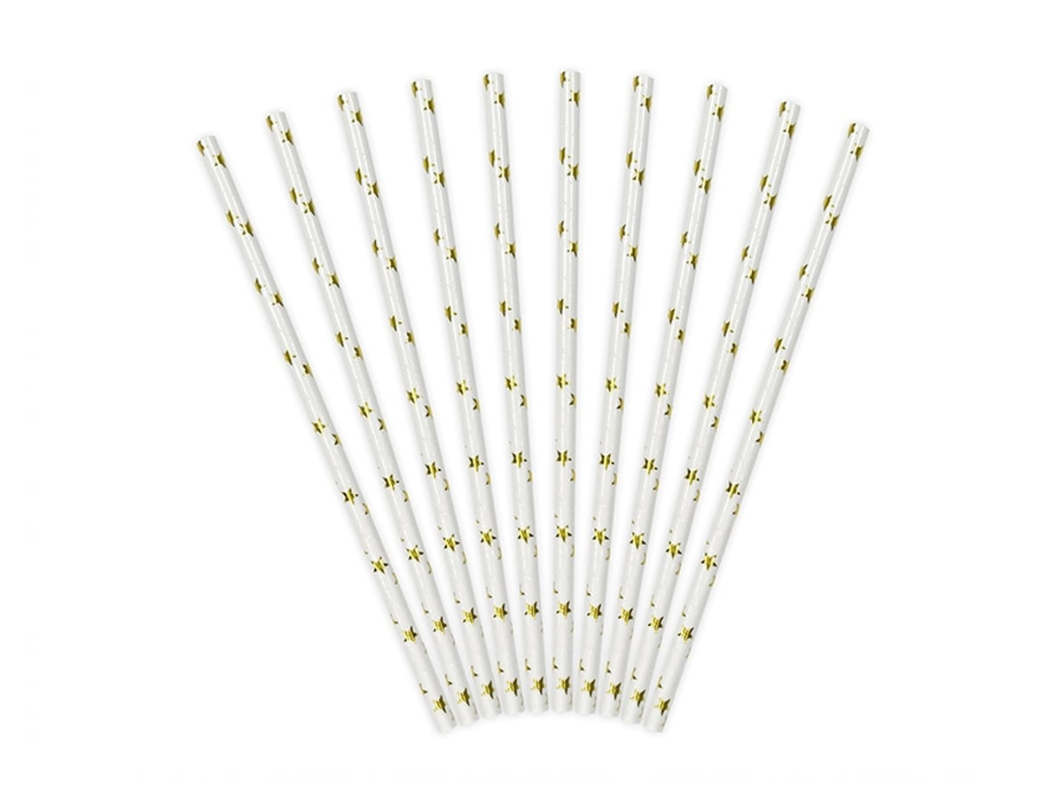 Csőszívószálak fehér arany csillagokkal - 10 db.