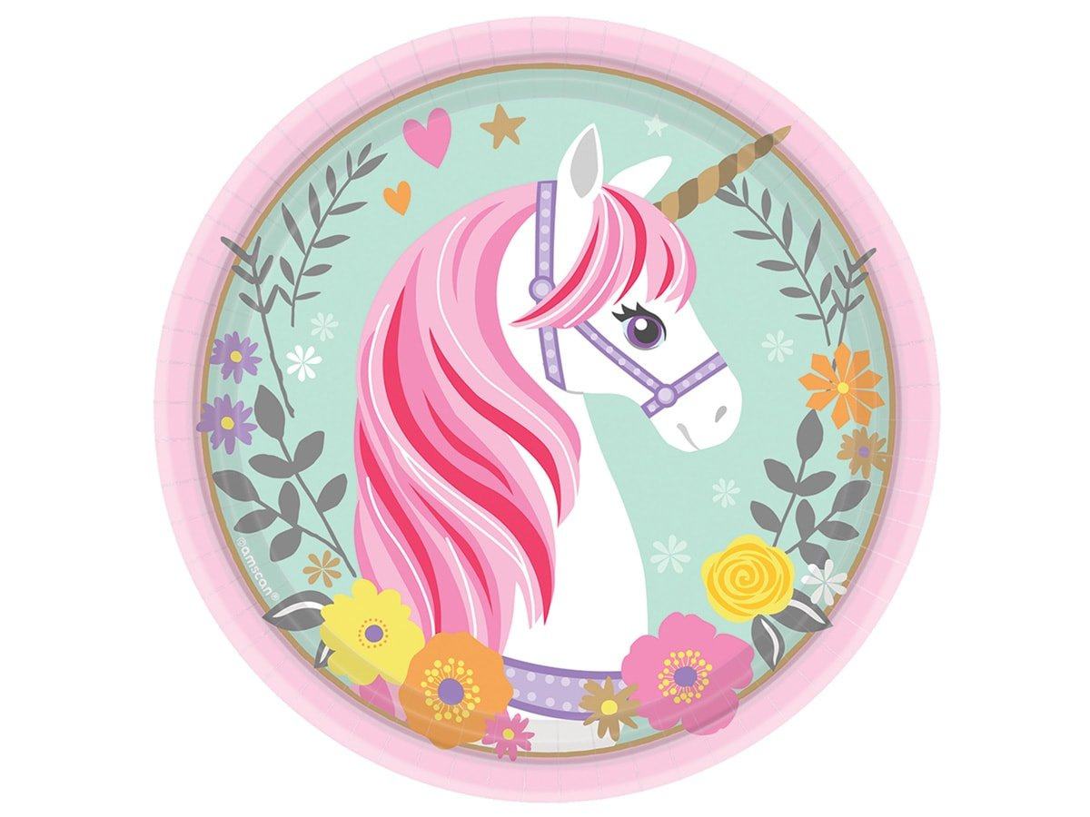 • Papír születésnapi tányérok a Magic Unicorn készletből, tökéletes egy gyermek születésnapi partira.