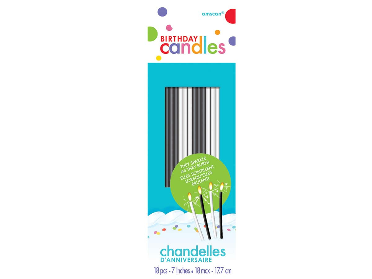Születésnapi gyertyák csillámokkal - fekete-fehér - 18 cm - 18 db.