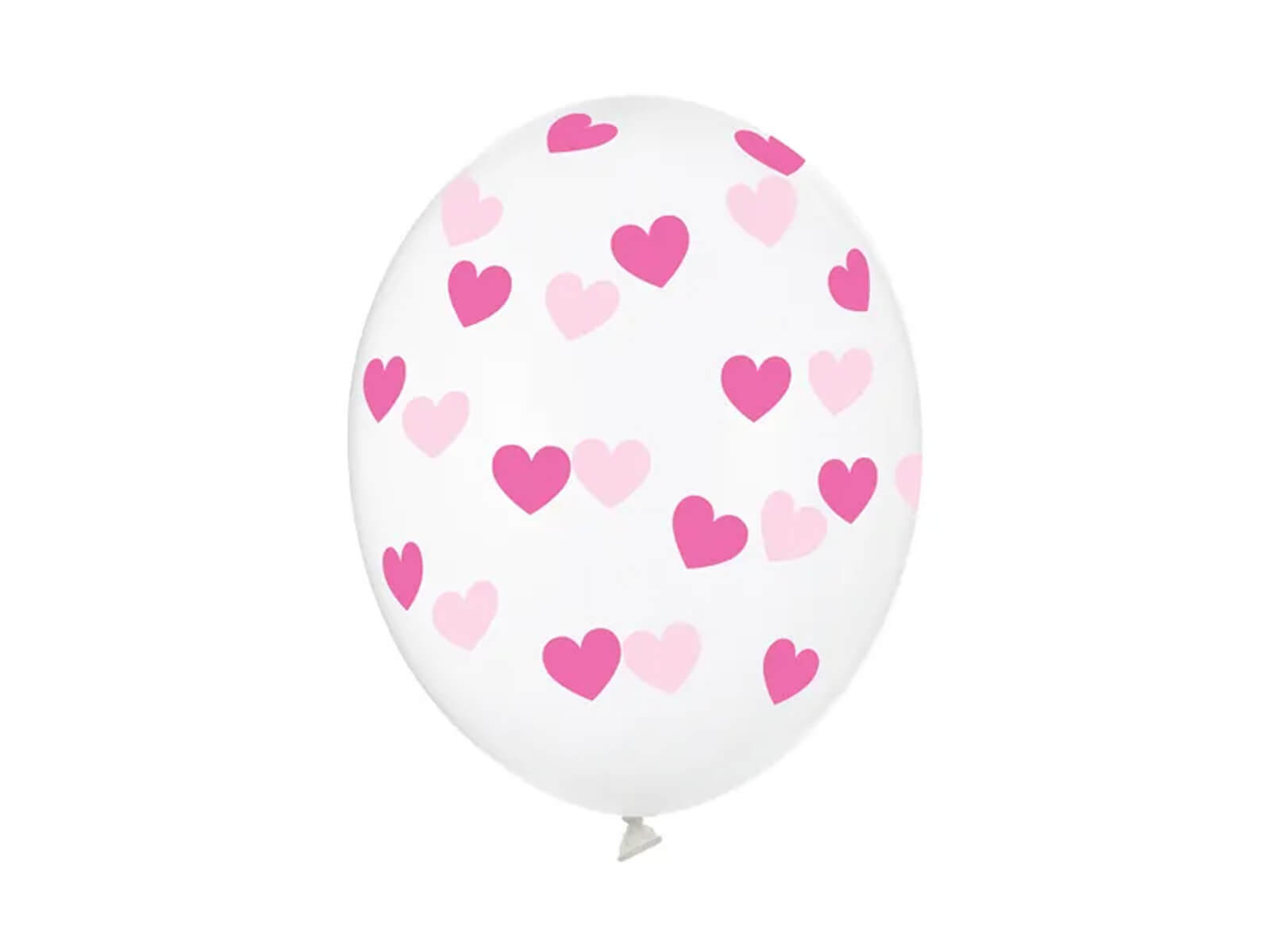 Átlátszó lufi Hearts rózsaszín - 30 cm - 6 db.