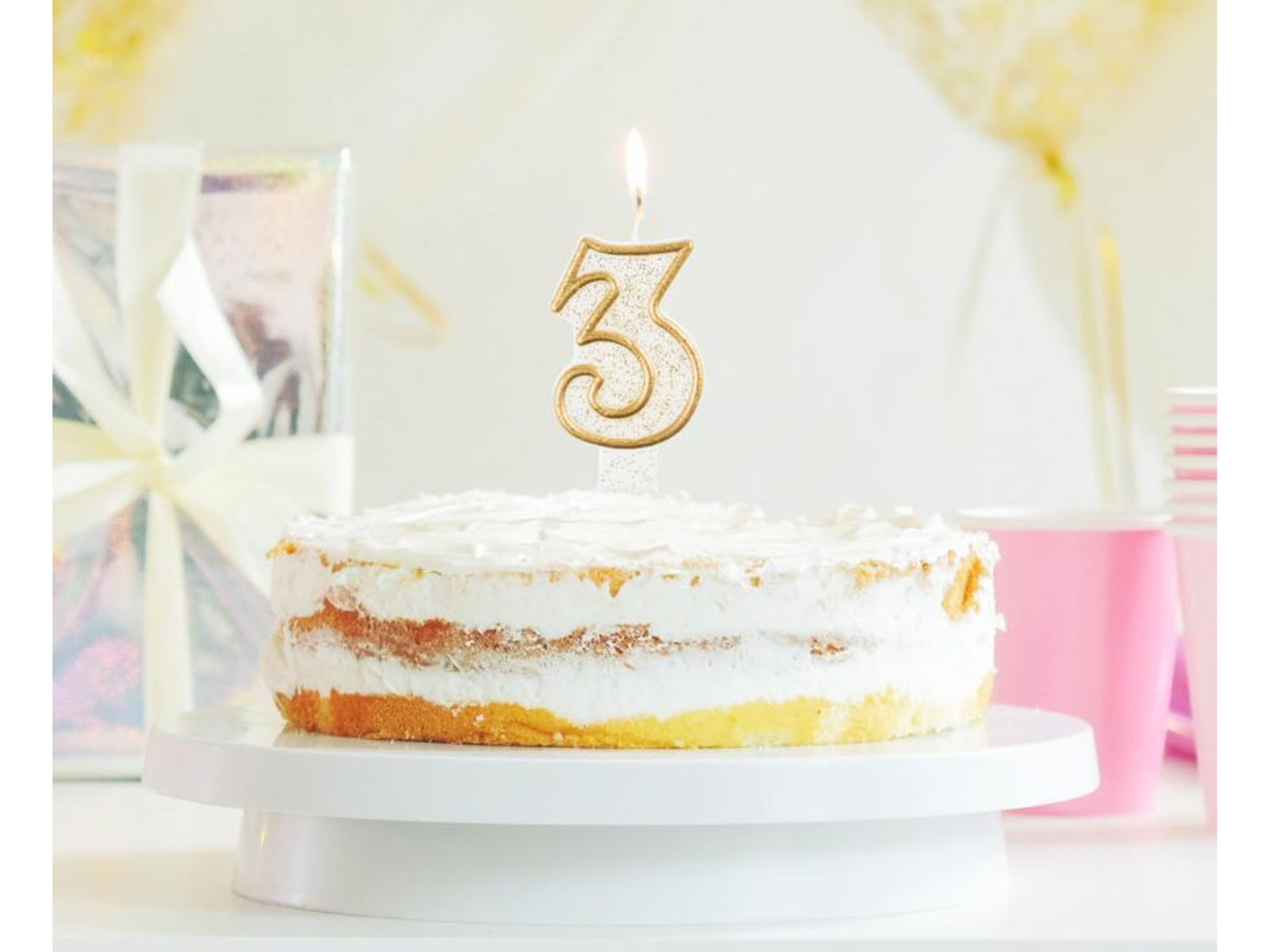Számgyertya arany peremmel és csillámmal - 3 - 1 db.