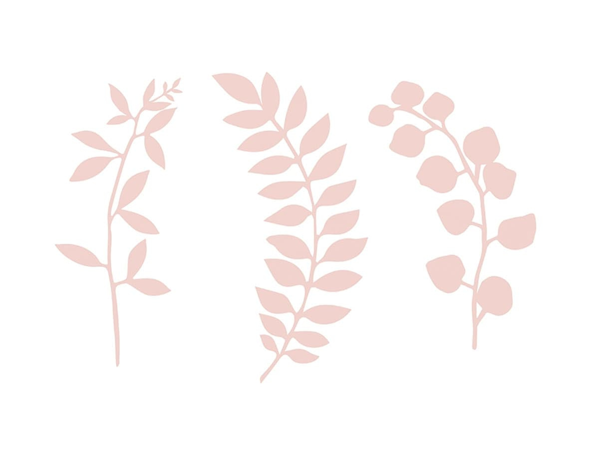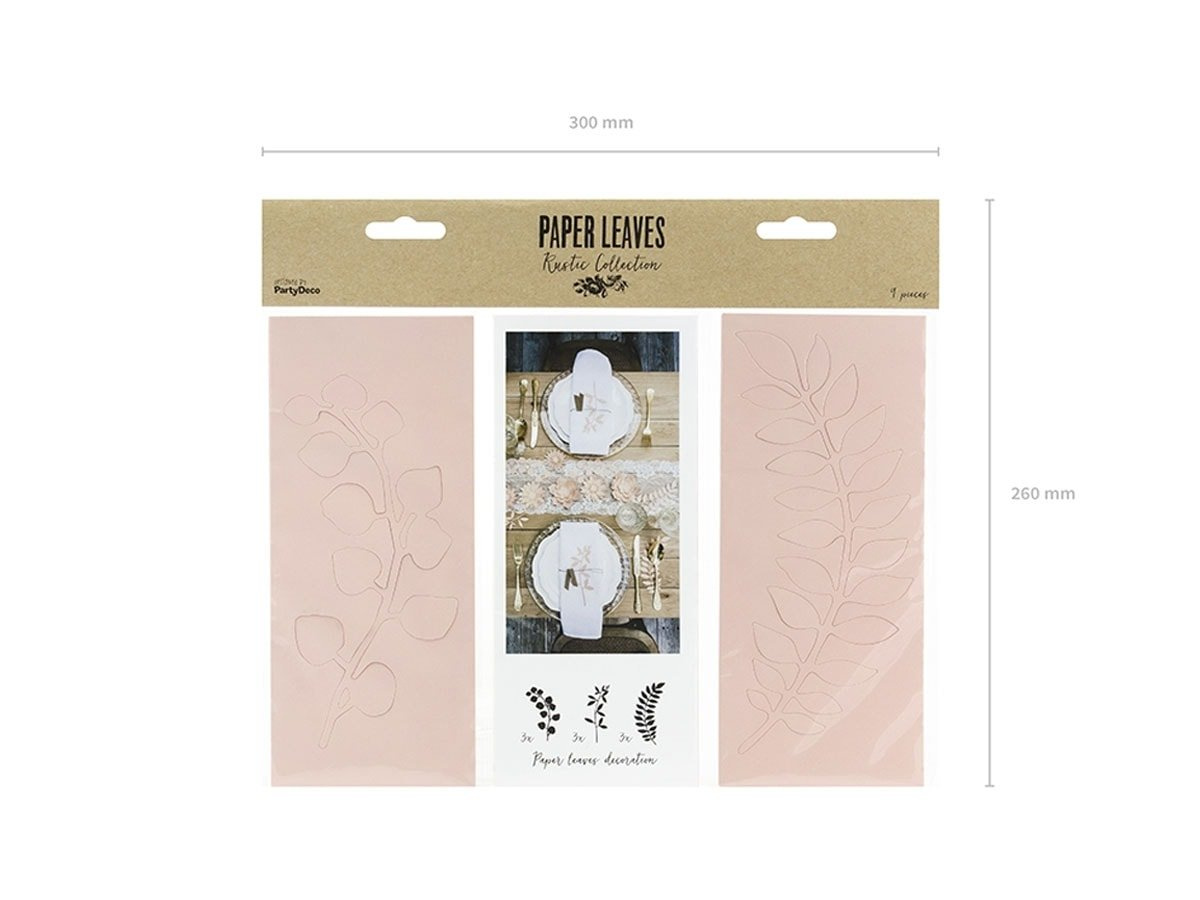 Díszítő gallyak levelekkel por rózsaszín - 9 db.