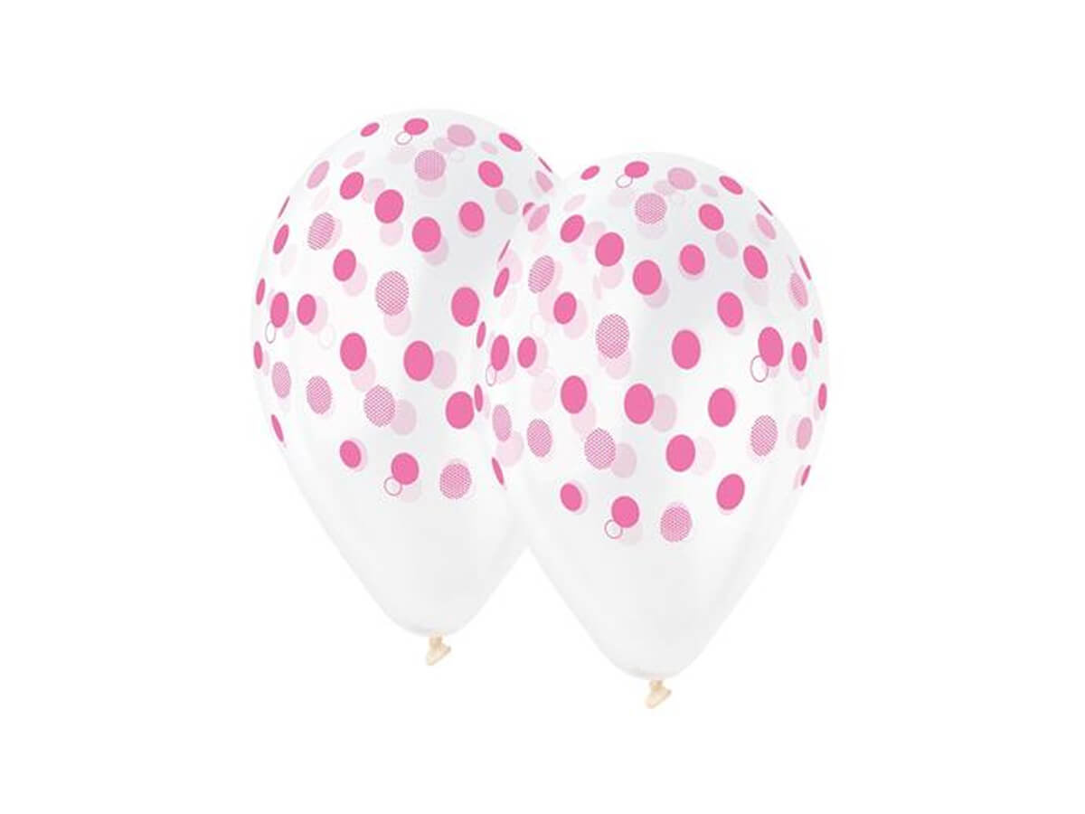 Fehér lufi rózsaszín borsóval - 30 cm - 5 db.