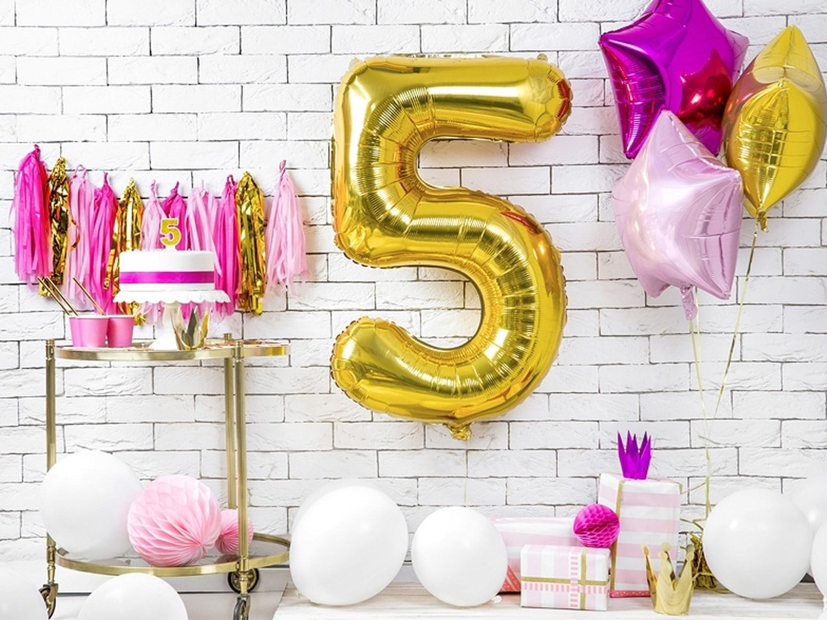 • Ötös számú születésnapi gyertya arany csillámmal.