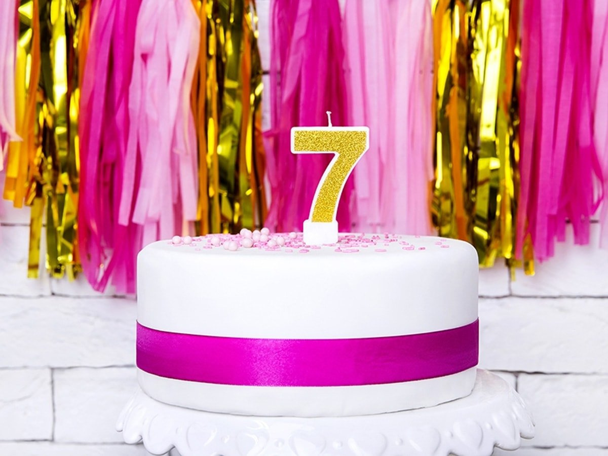 A hetedik: A gyertya a "7" szám alakú, így tökéletes kiegészítője a hetedik születésnapnak, feltűnő díszítésként szolgál a tortán vagy más édességen.