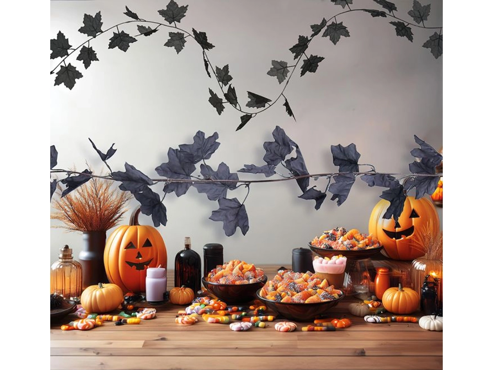 Fokozza a halloweeni parti sötét hangulatát a Fekete levél füzér. Ez az egyedülálló dekoratív elem hossza 180 cm ideális ajtókampónak, korlátpántnak vagy fali dekorációnak. A finom fekete levelek eleganciát és titokzatosságot kölcsönöznek bármelyik szobának, így a Halloween igazán különleges lesz. Akár egy nagy partit, akár egy meghitt összejövetelt tervez, ez a füzér kötelező kelléke minden őszi dekorációnak. A termék egyenként kerül forgalomba a könnyű használat és az újrafelhasználhatóság érdekében.