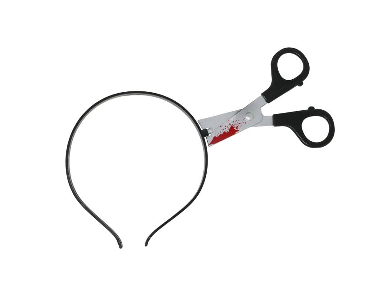 Alakítsa át a Halloween álruháját egy igazi horrorfilmbe a fejpántunkkal "Olló a fejben". Ez a szokatlan dekoráció minden tematikus párt szenzációjává teszi Önt. Biztonságos anyagokból készült, a valósághűnek tűnő ollót a fejpántba "ragasztják", amely bármilyen fejhez illeszkedik, így egész este kényelmesen viselhető.