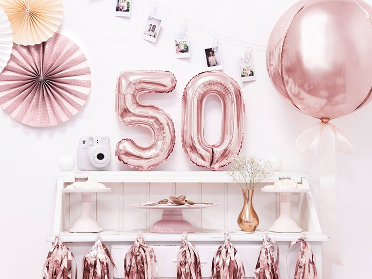 Fólia lufi szám 5 arany rózsaszín - 35 cm