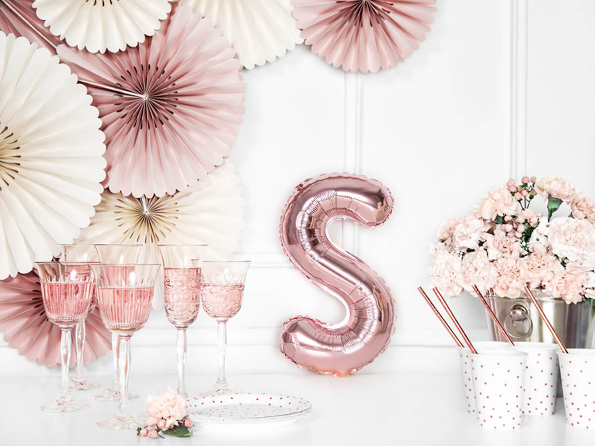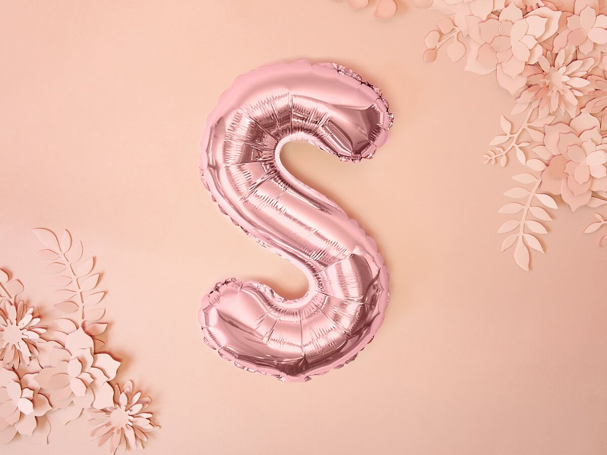 Fólia lufi 'S' betű rózsaszín és arany - 35 cm