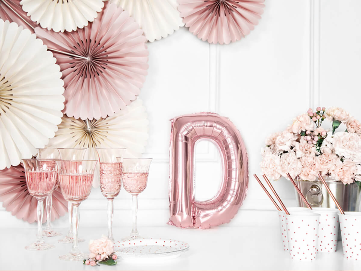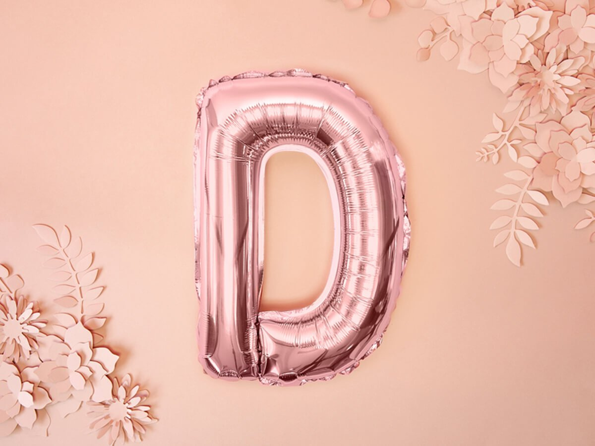 Fólia lufi 'D' betű rózsaszín és arany - 35 cm