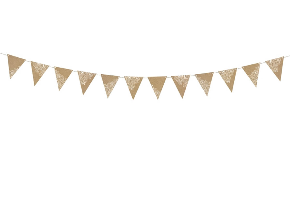 • Zászlós banner kraft papírból, fehér nyomtatással.