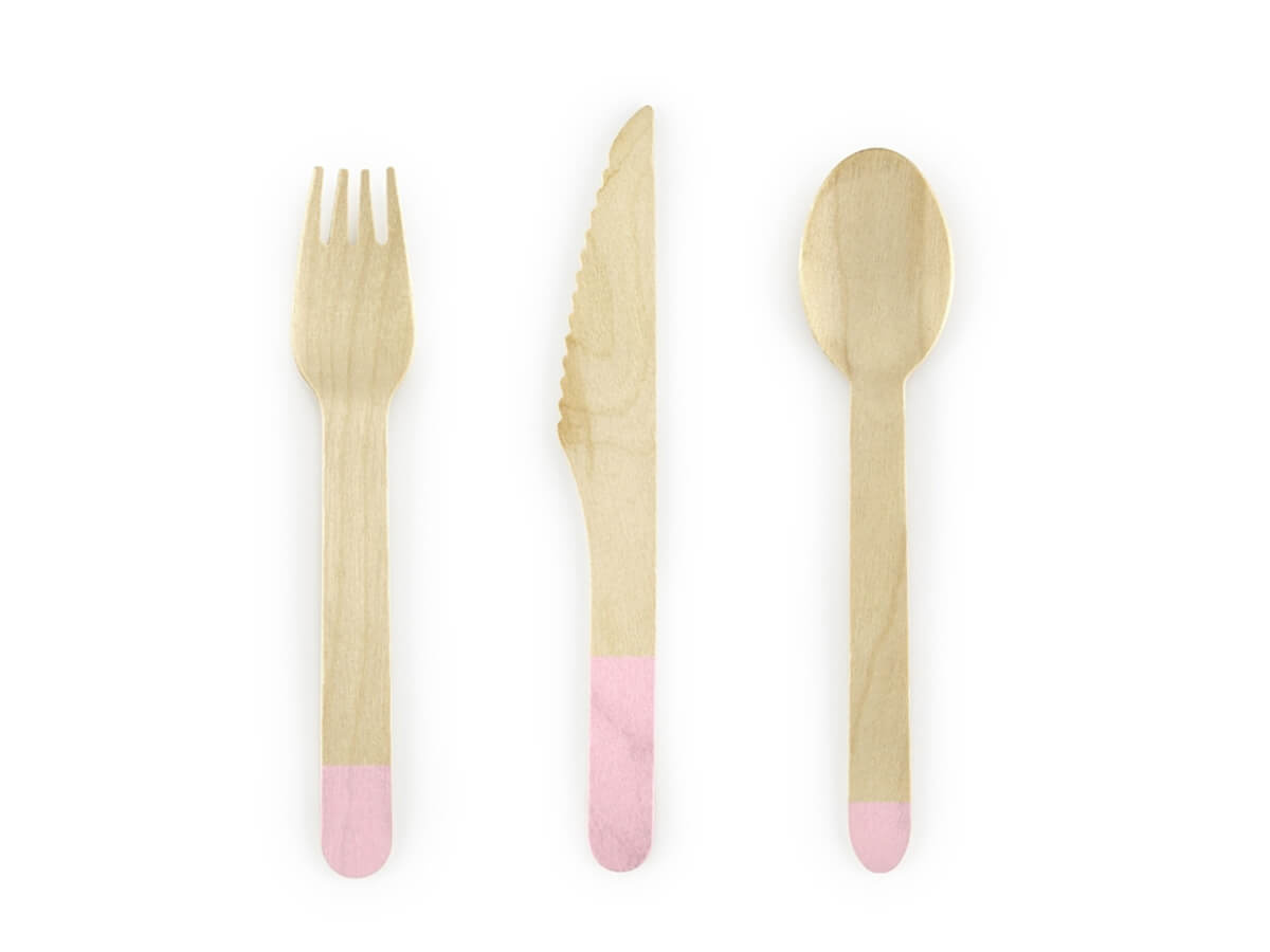 Rózsaszín fa evőeszközkészlet - 18 darab.