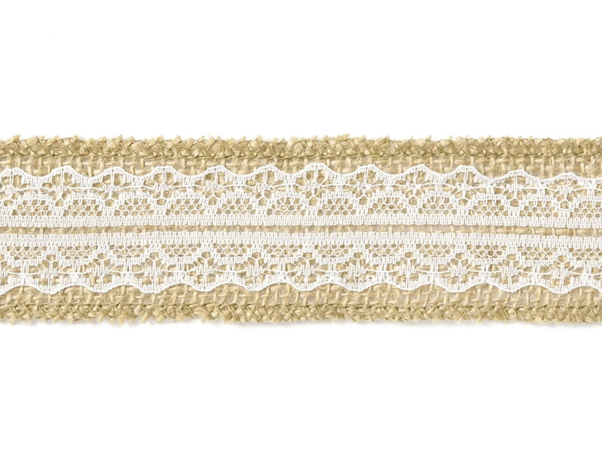 Jutaszalag fehér csipkével, 40 mm / 5 m, 1 db.