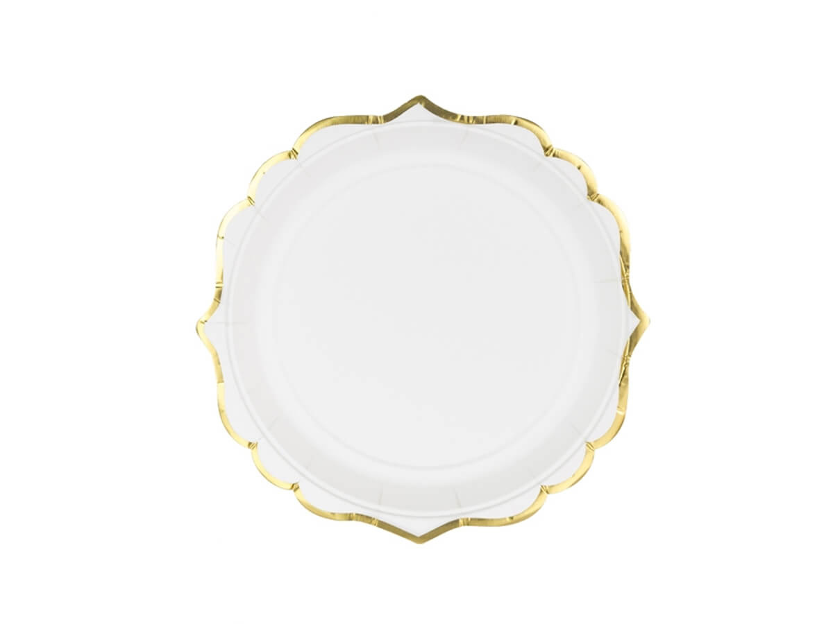 Fehér papírtányérok arany peremmel - 18 cm - 6 db.