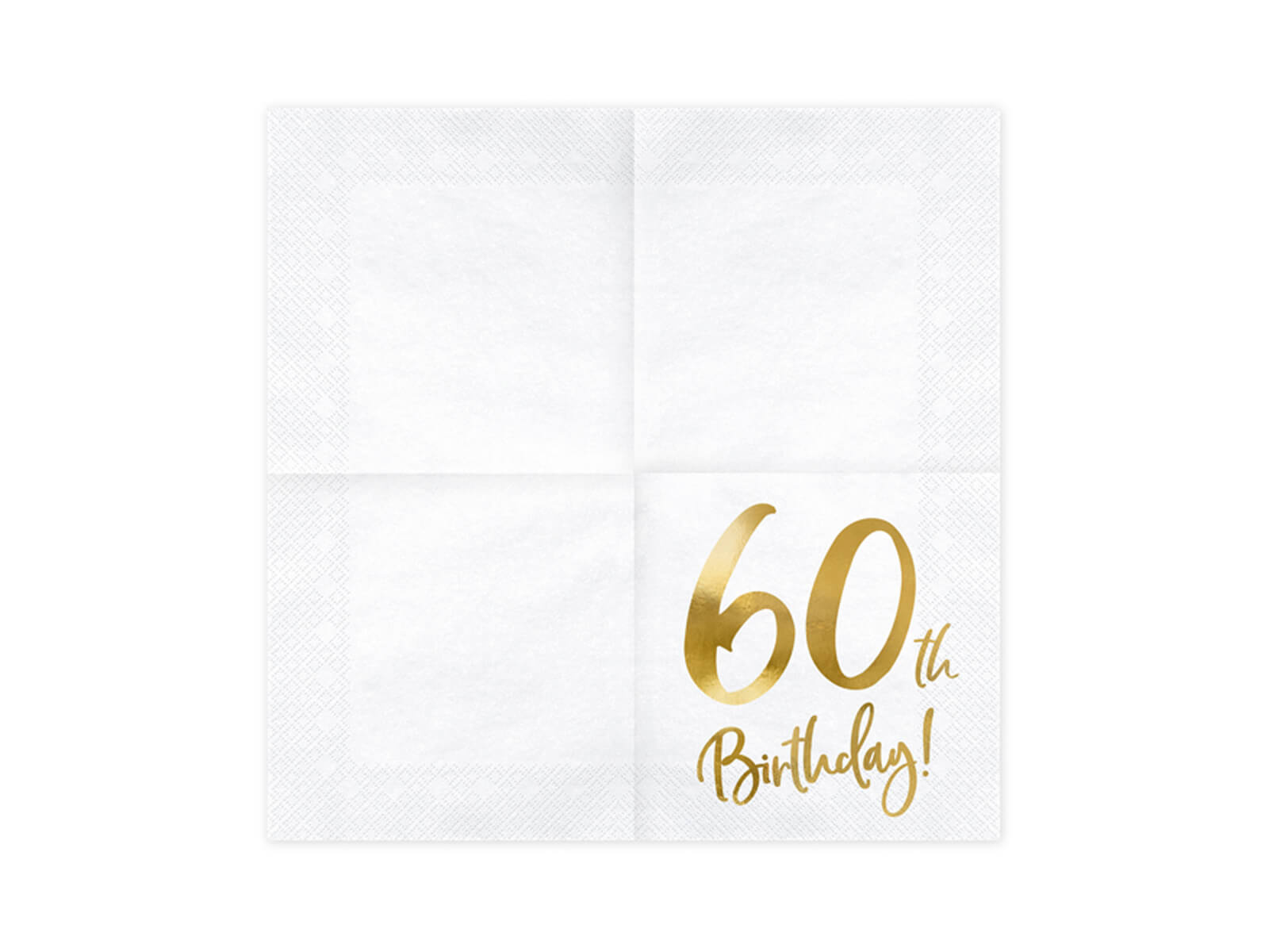 Bátorítjuk Önt, hogy fedezze fel 60. születésnapi szalvétáinkat - a felnőtt ízlést szem előtt tartva. A hagyományos, egyszerű szalvétákkal ellentétben termékeink ötvözik a funkcionalitást az eleganciával. Fehér színűek, finom aranynyomással, így tökéletesen illeszkednek bármilyen dekorációhoz, és az arany hozzáadásával minden eseményhez egy kis osztályúságot adnak.