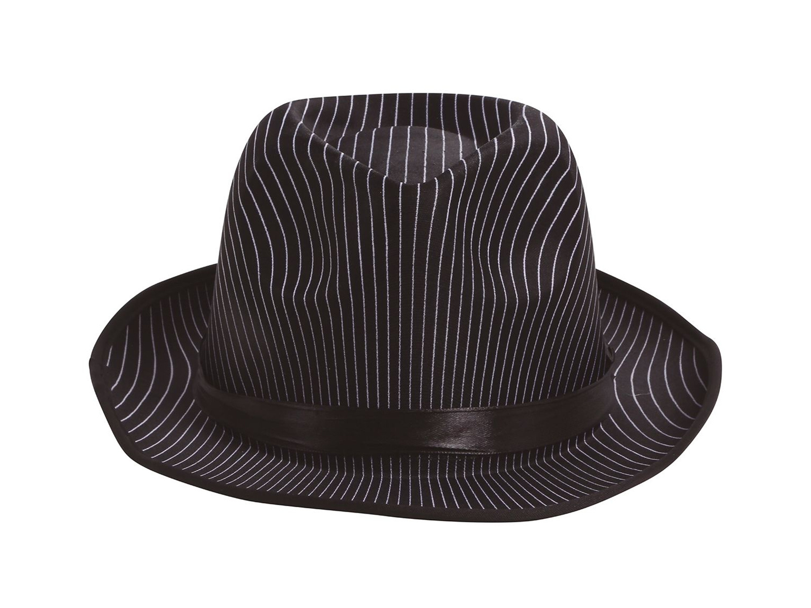 Fekete csíkos gengszterkalap csővel - 1 db.