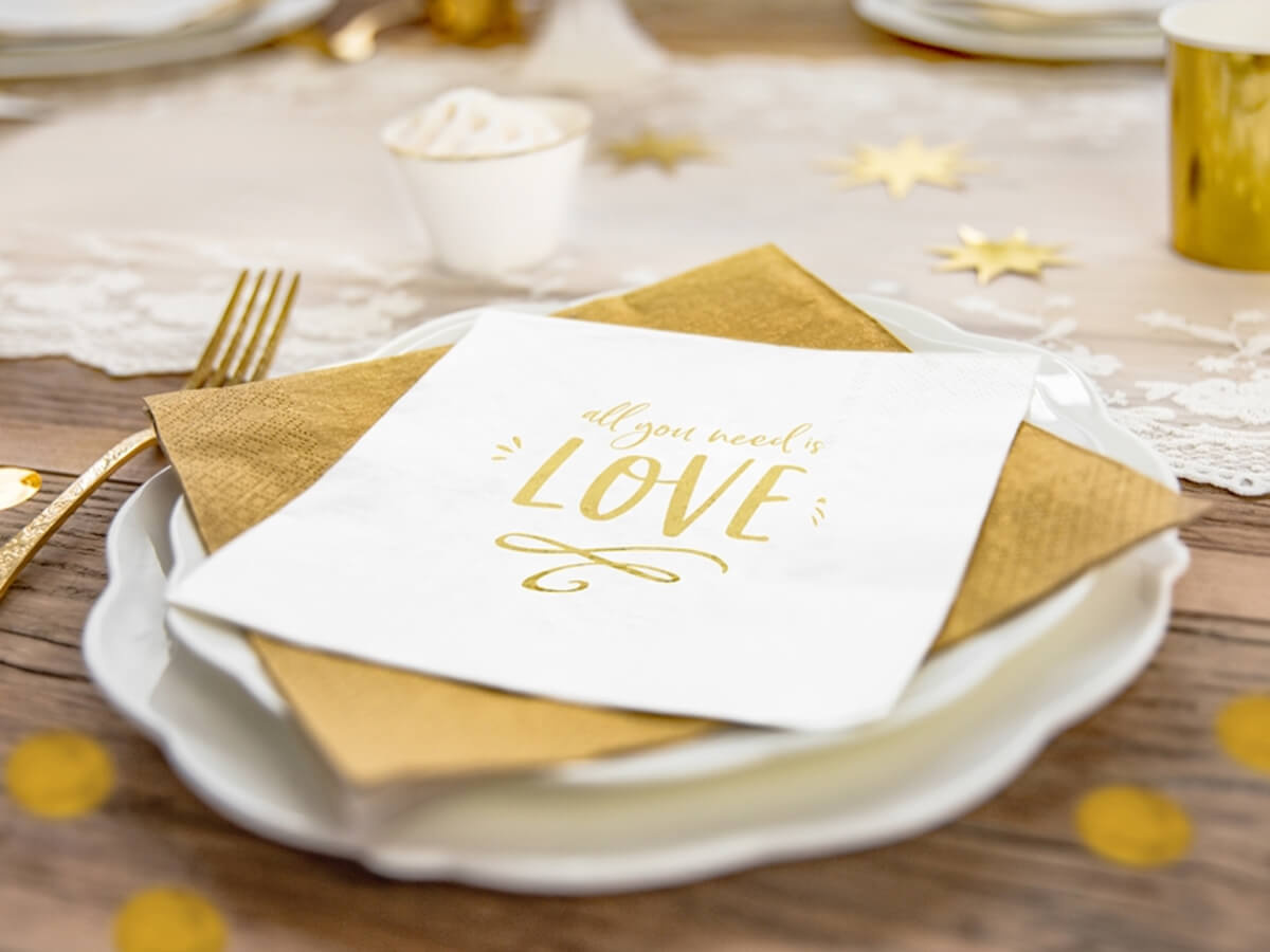 Fehér esküvői szalvéta All you need is love - 33 cm - 20 db.
