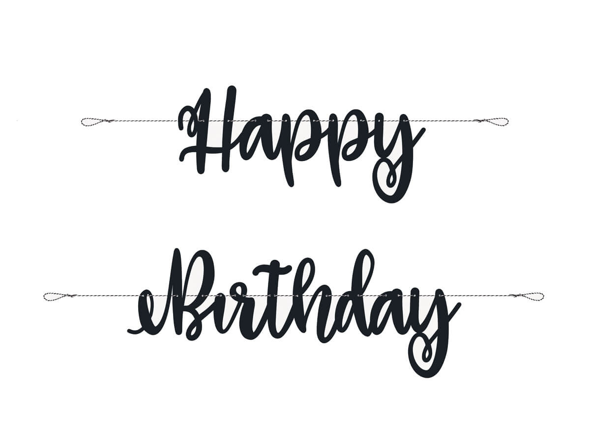 • Banner fekete színben a Happy Birthday szóval, a tökéletes dekoráció születésnapokra.