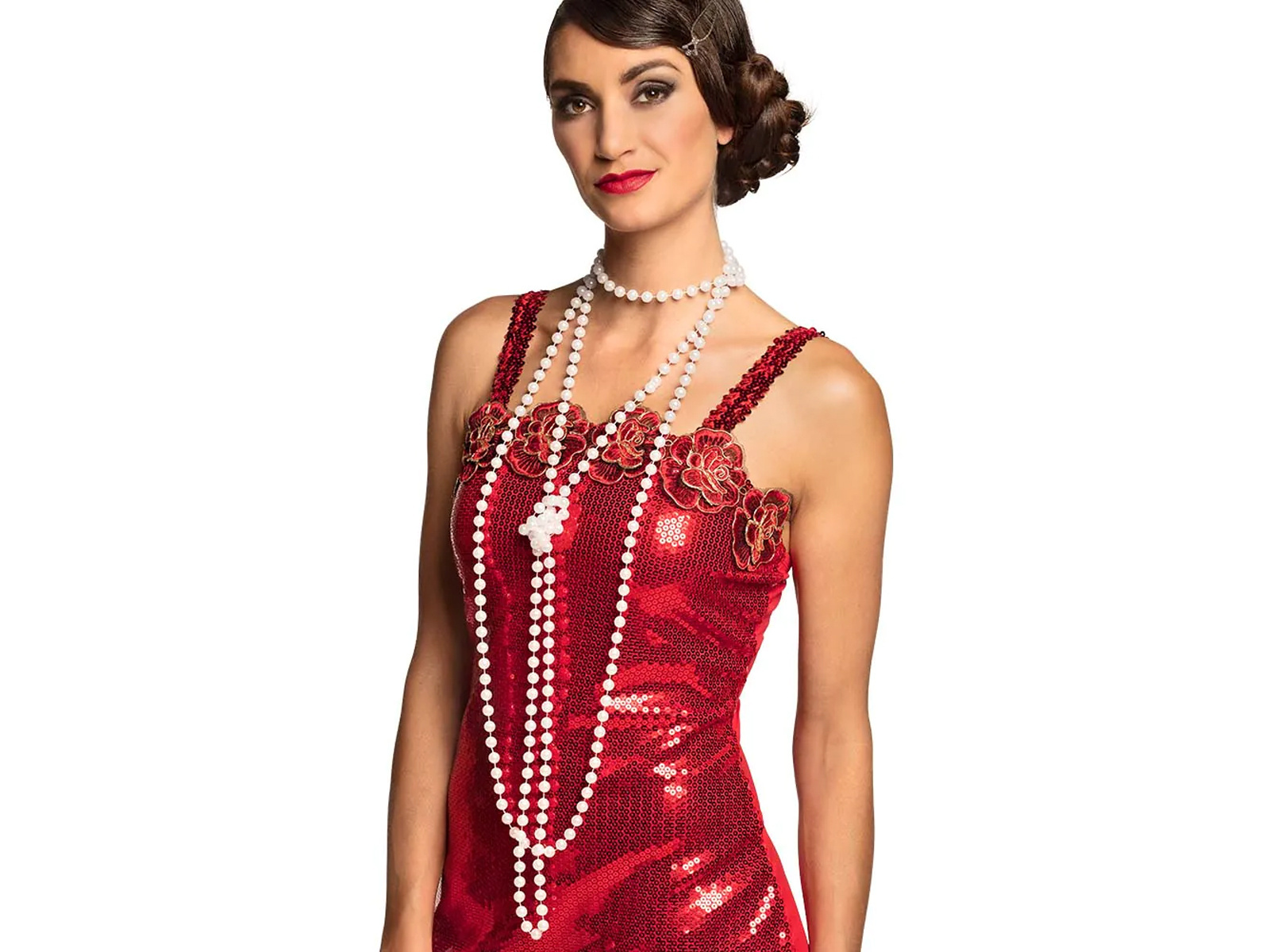 Bemutatja Két gyöngy nyakláncból álló készlet - tökéletes kiegészítője az öltözékednek bármilyen 1920-as évek ihlette eseményen. Ezek az egyedi nyakláncok, amelyek kiváló minőségű műgyöngyökből készültek, bármilyen öltözékhez eleganciát és eleganciát kölcsönöznek.