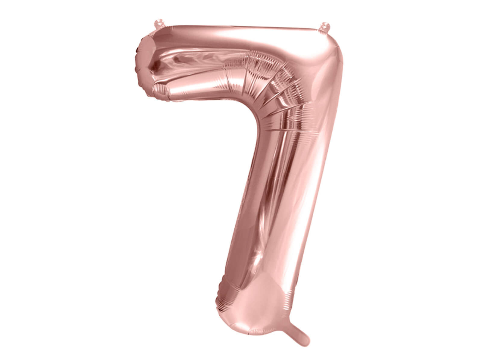 • Fólia lufi - rózsaszín és arany hetes "7", speciális tartókkal a könnyű összeszereléshez. Ideális dekoráció születésnapokra, kombinálható más lufikkal, hogy egy adott számot alkossanak.