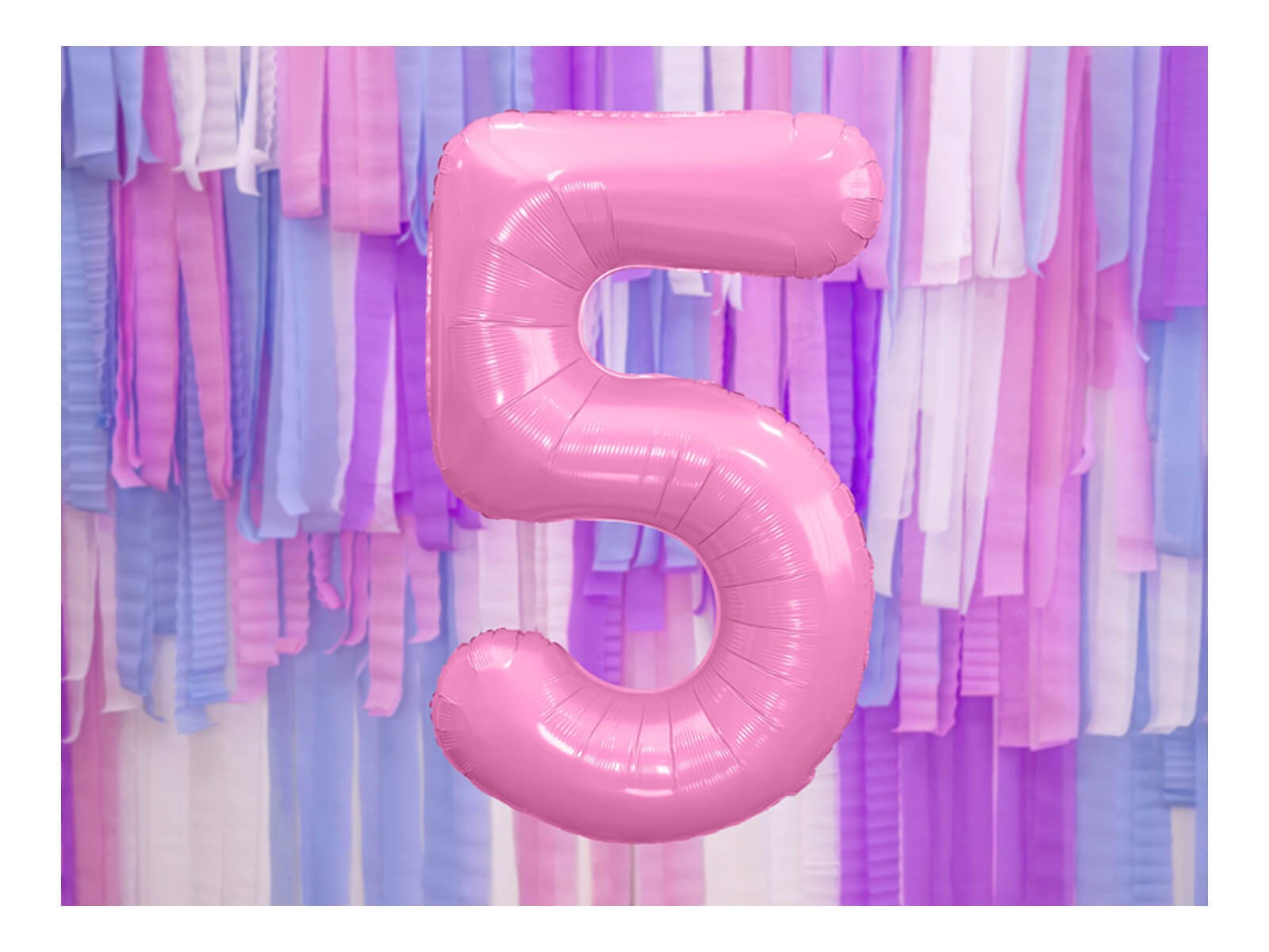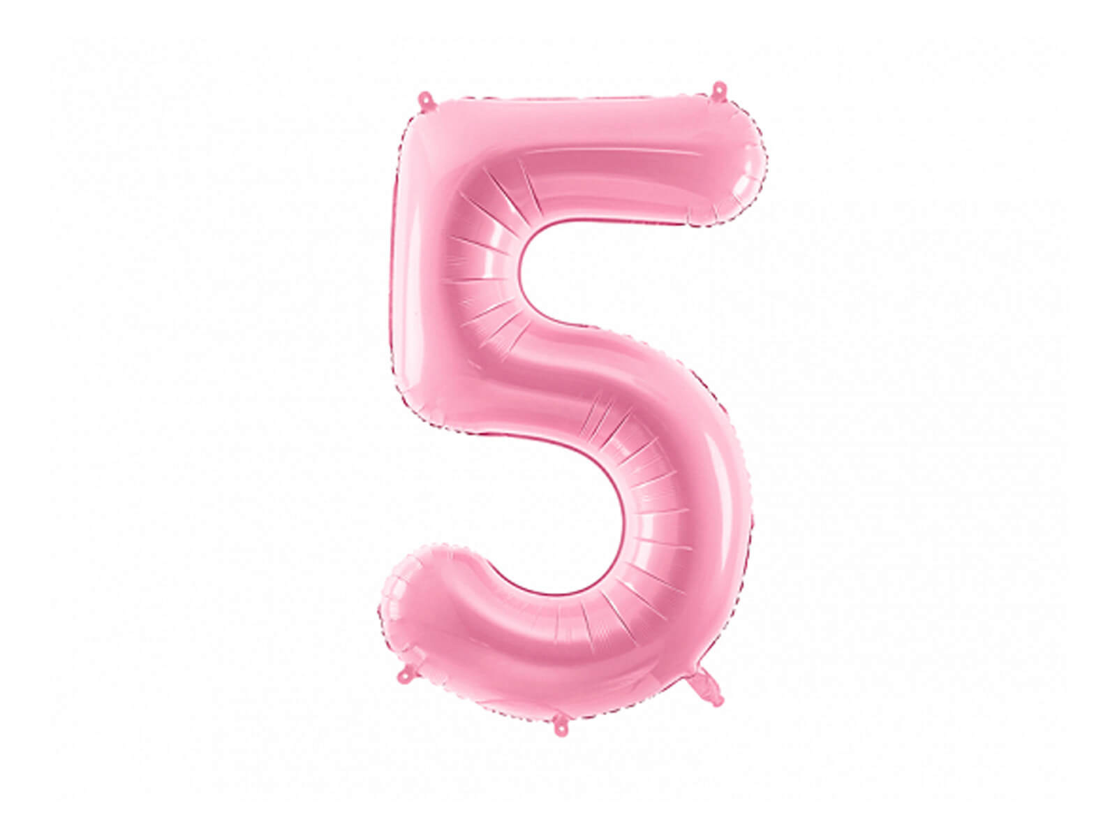 Fedezze fel az 5-ös számú fólialufit pasztell rózsaszínben. Ez az egyedi lufi tökéletes dekoráció bármilyen ünnepséghez, különösen egy ötödik születésnapi partihoz.