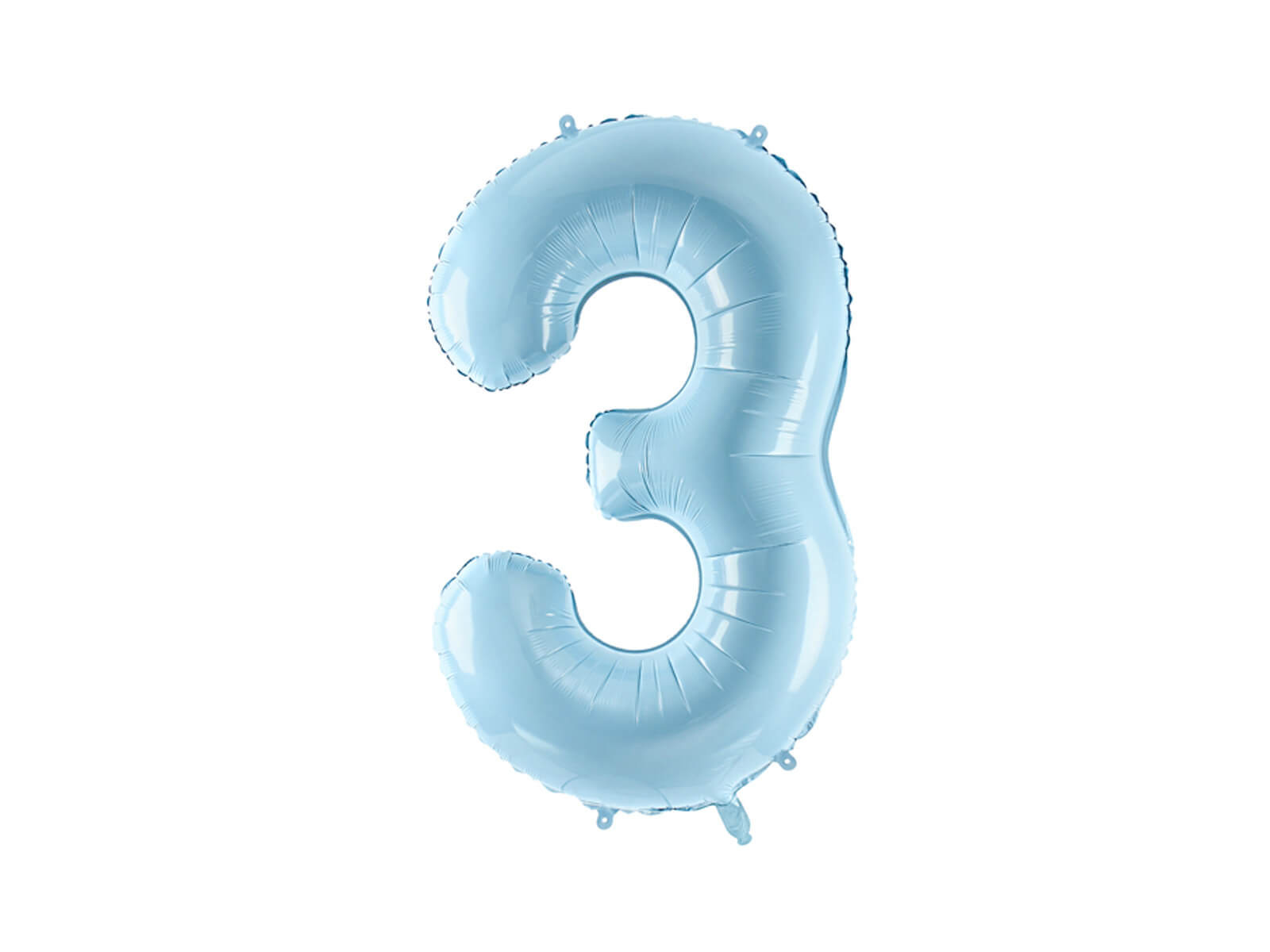 • Fólialufi - kék hármas "3", speciális tartókkal a könnyű összeszereléshez. Ideális dekoráció születésnapokra, kombinálható más lufikkal, hogy egy adott számot alkossanak.