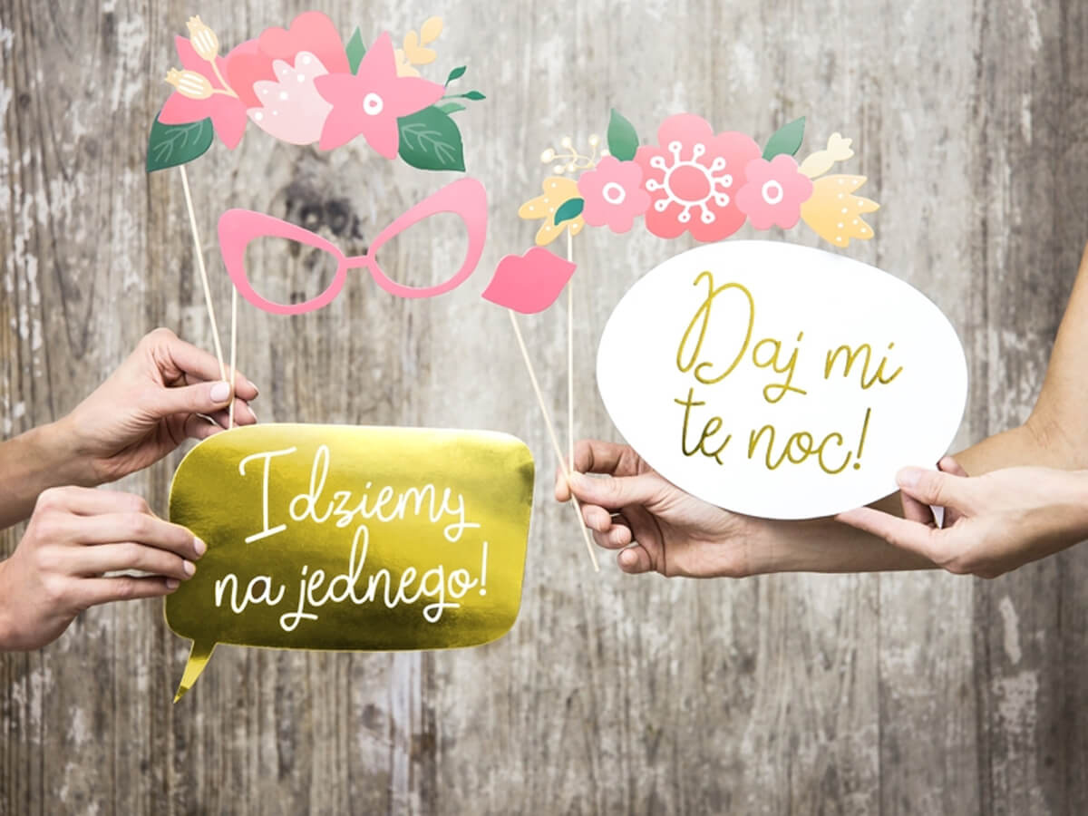 Tegye egyedülállóvá és emlékezetessé esküvői fotóit a fotó kellékek csodálatos gyűjteményével! A 12 kellékből álló készletünk nagyszerű módja annak, hogy szórakoztató pillanatokat rögzítsünk és nagyszerű emlékeket hozzunk létre. Csomagunk olyan minták keverékét tartalmazza, amelyek biztosan illeszkednek bármilyen stílushoz és témához. Az esküvő örömének megörökítése még soha nem volt ilyen egyszerű - csak ragadja meg az egyik kellékünket, és kezdjen el pózolni! Ezekkel a különleges érintésekkel szórakoztató és kreatív módon mutathatja ki szerelmét. A készletünk valóban tökéletes kiegészítője minden esküvői albumnak!