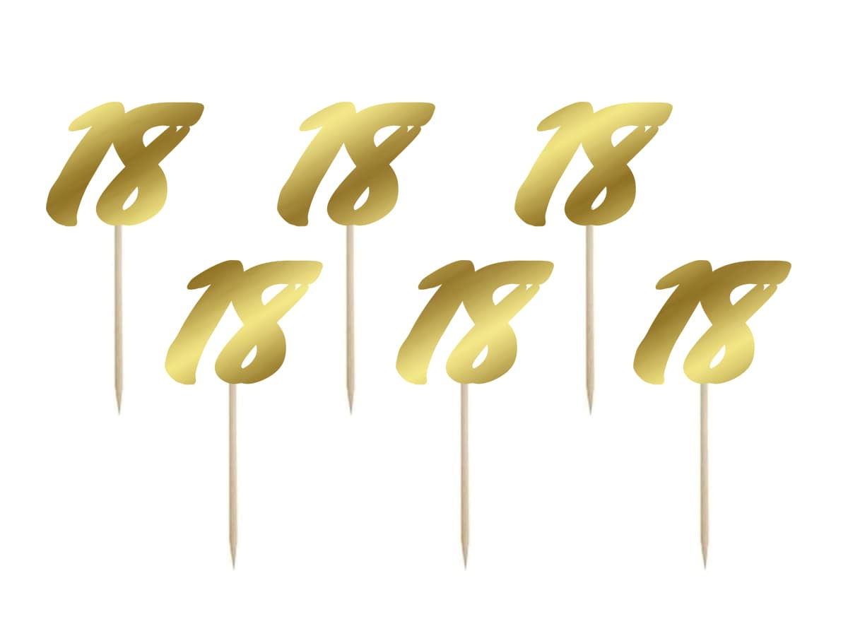 Fedezze fel a 18 Cake Picks-t - a tökéletes dekoráció a 18. születésnapi partihoz. Ezek az egyedi pálcikák, a tetején az elegáns 18-as számmal, különleges csillogást kölcsönöznek bármelyik süteménynek, muffinnak vagy cupcake-nek.
