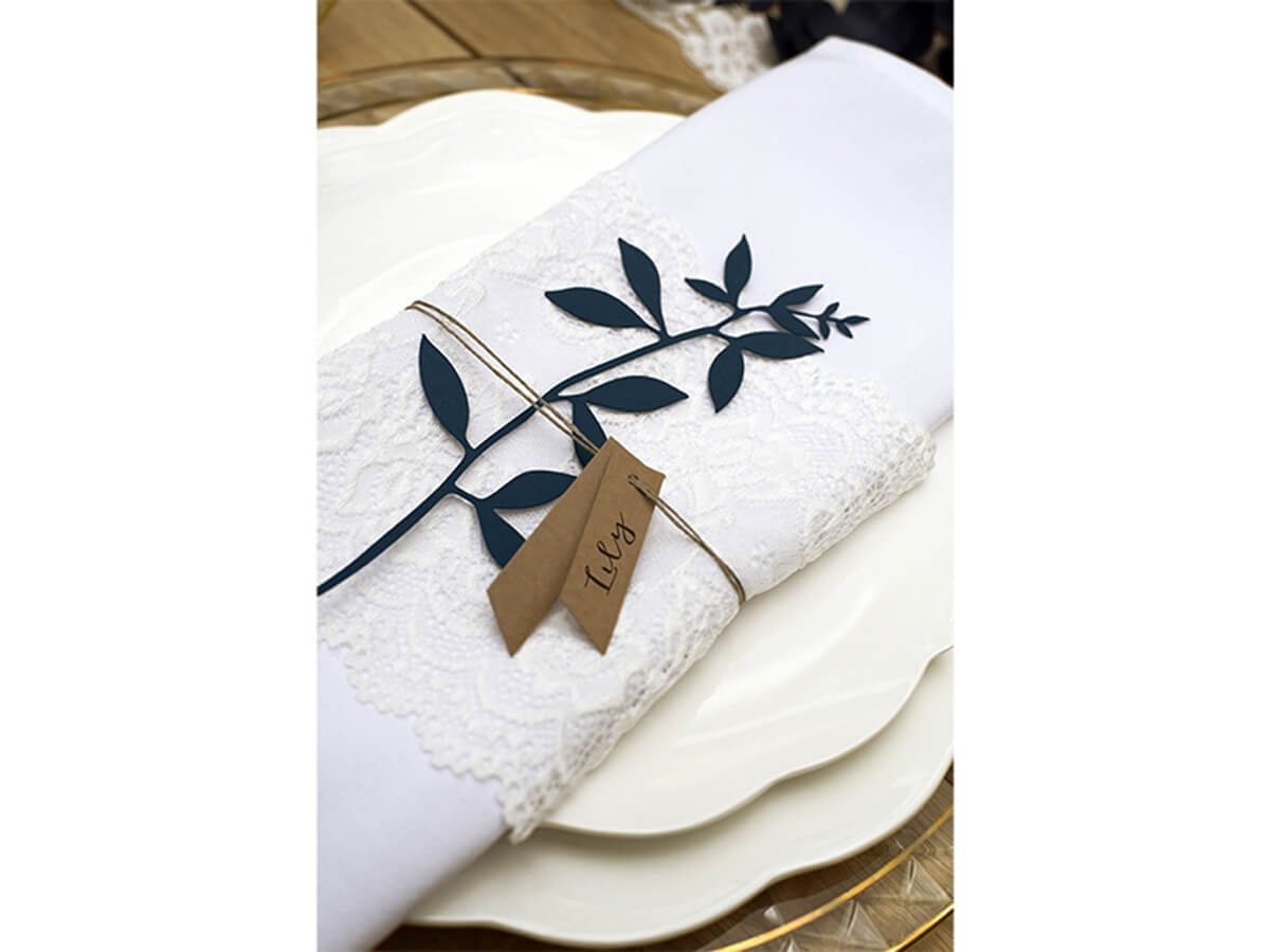 Díszítő gallyak levelekkel tengerészkék - 6 db.