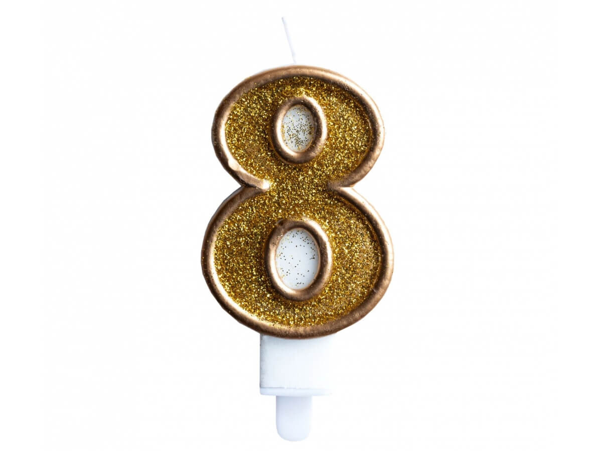 Számgyertya arany peremmel és arany csillogással - 8 - 1 db.