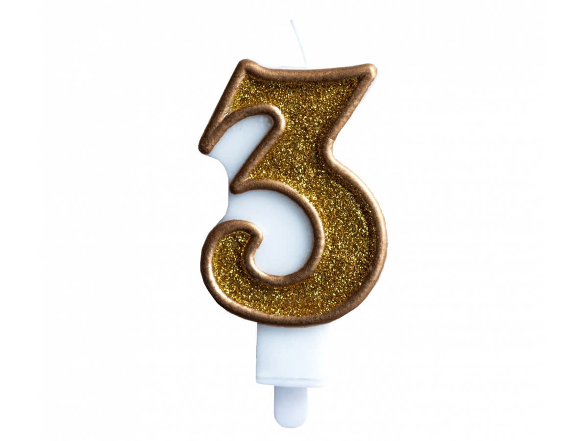 Számgyertya arany szegéllyel és arany csillogással - 3 - 1 db.
