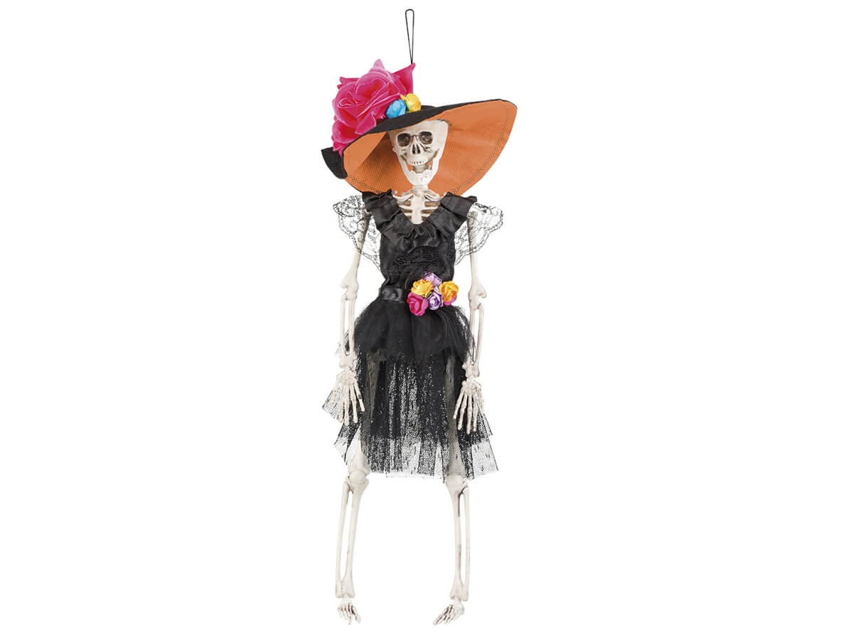 • Függő dekoráció - Mexikói nő csontváza, ideális Halloweenre.