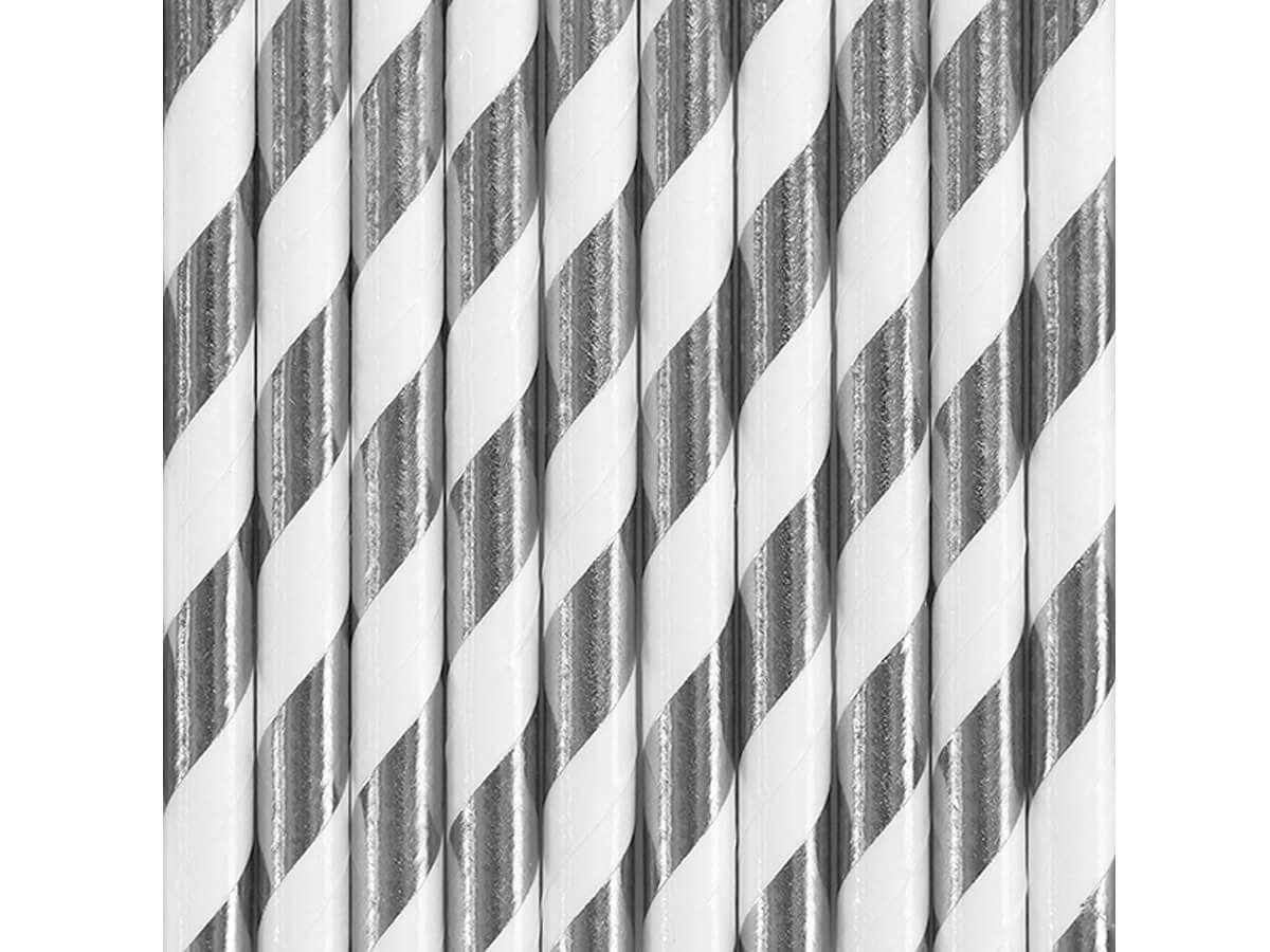 Ezüst metál csöves szívószálak fehér csíkokkal - 10 db.
