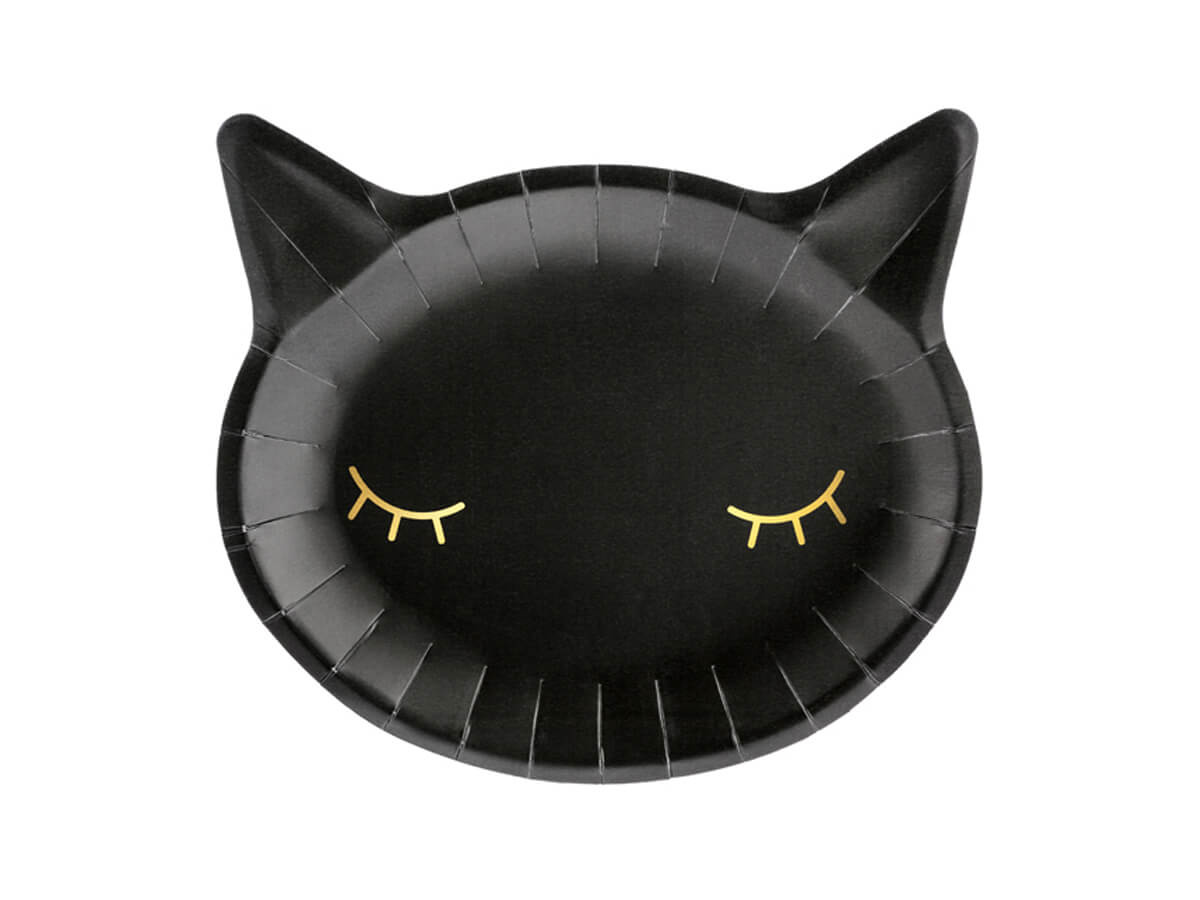 Halloween papírtányér Cica fekete - 22 x 20 cm - 6 db.