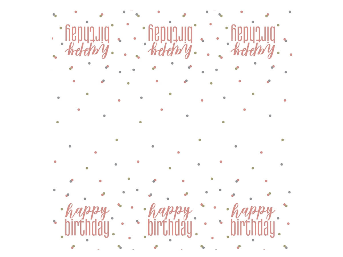 Rózsaszín arany Happy Birthday terítő - 137 x 213 cm - 1 db.