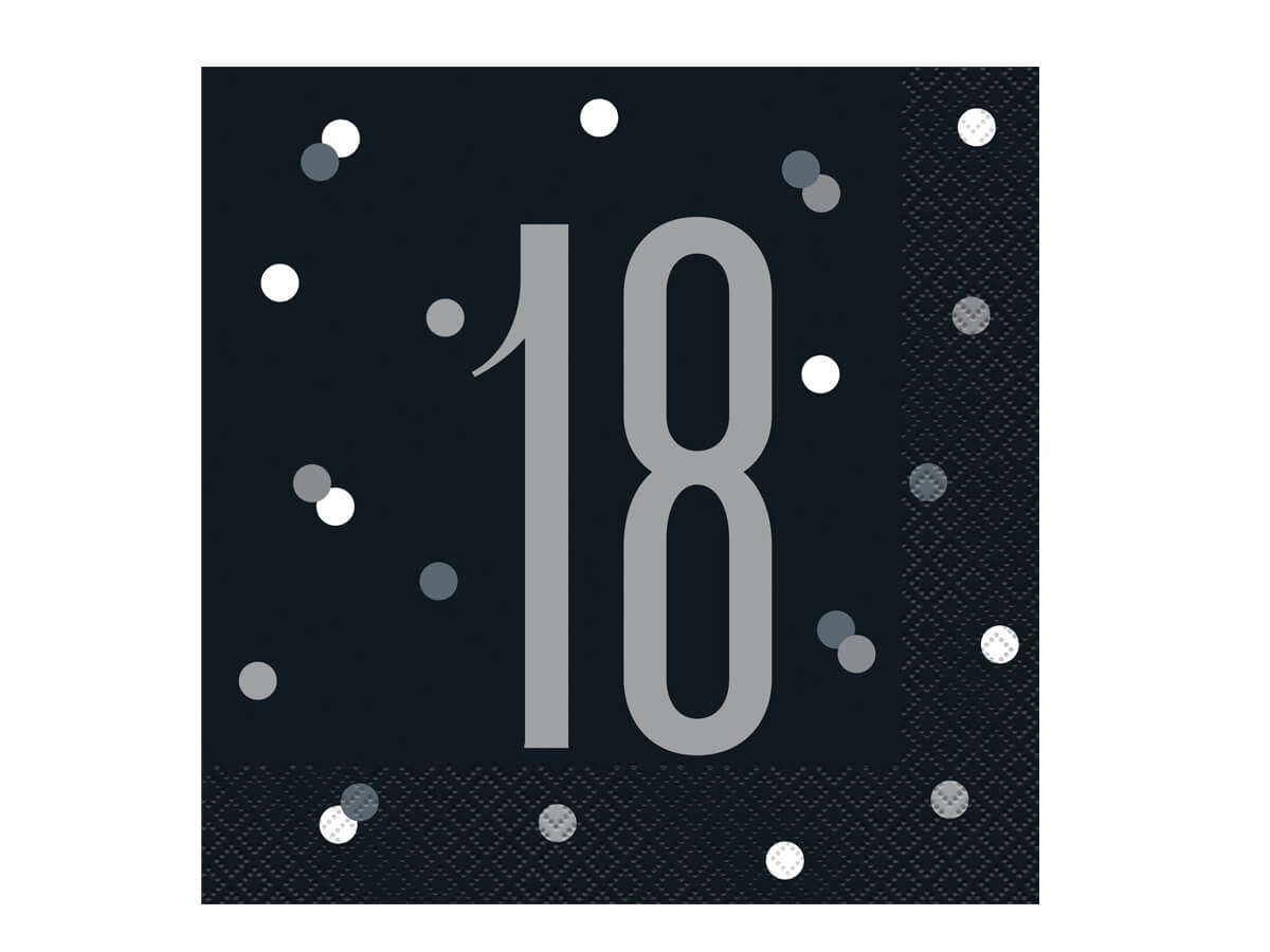 Tizennyolcadik születésnapi fekete szalvéta - 33 cm - 16 db.