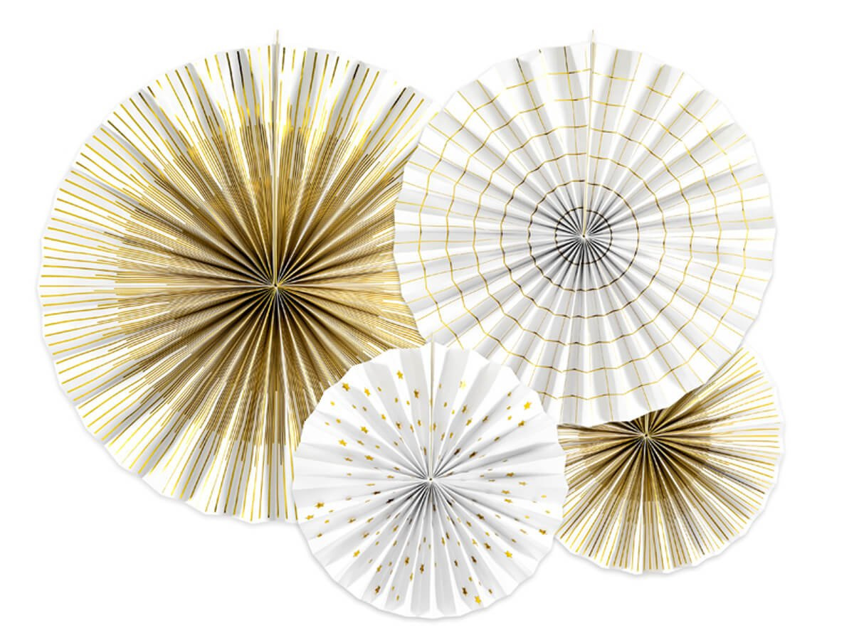 Fedezze fel az eleganciát és a kifinomultságot a fehér és arany függő rózsasorainkkal. A négy különböző méretű darabból álló készletben (23 cm átmérőjű - 2 db, 32 cm és 40 cm) kapható dekorációs darabok tökéletes kiegészítői bármely belső térnek, stílusos és stílusos lesz.