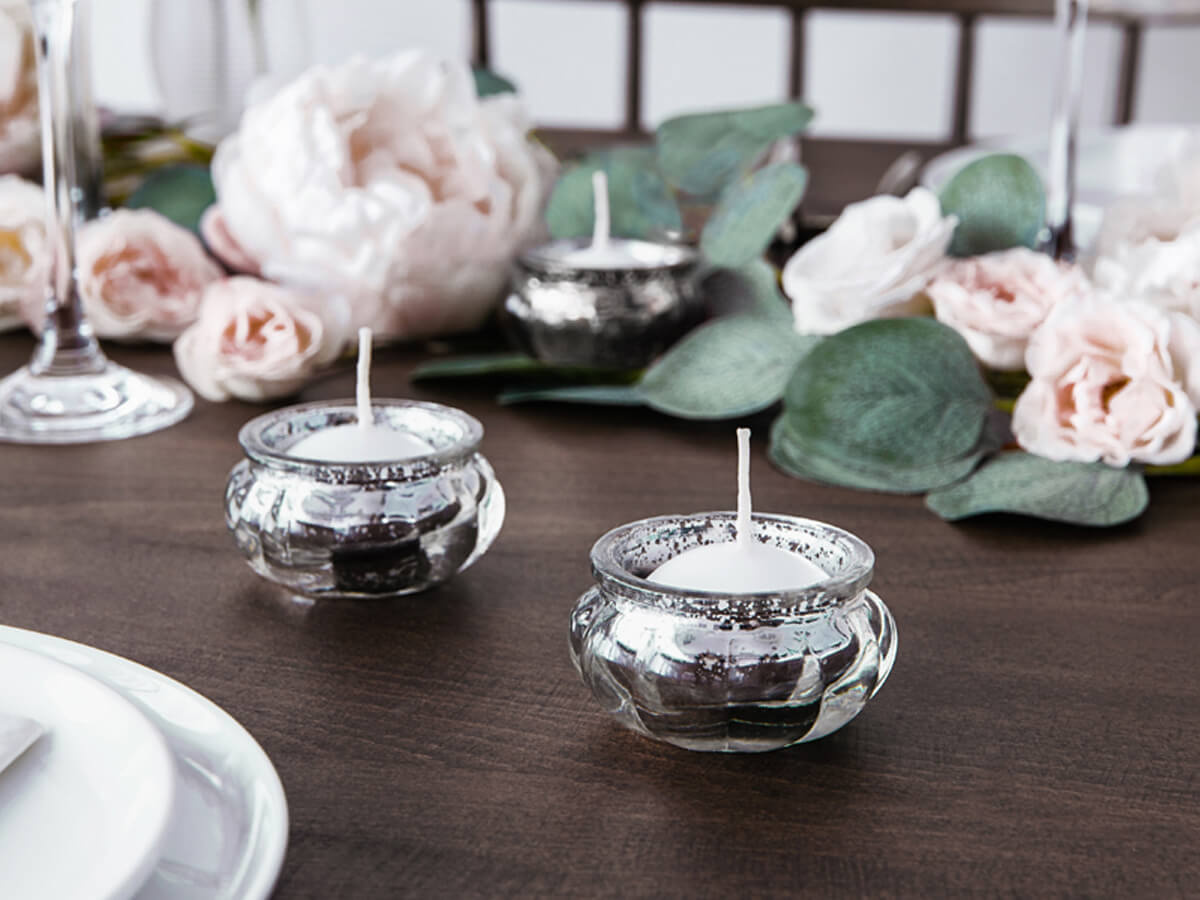 Világítson fel bármilyen alkalmat ezekkel az elegáns üveg gyertyatartókkal! Ezek a gyönyörű ezüstszínű asztaldíszek lágy hangulatot biztosítanak, és tökéletes dekoráció esküvőkre, karácsonyi partikra vagy bármilyen alkalomra, ahol tökéletes hangulatot szeretne teremteni. Mindegyik 6 cm széles és 3 cm magas, és négy darab van a csomagban, ami elegendő a dekorációs igények kielégítésére. Ezek a bájos üveg gyertyatartók csillogást adnak minden összejövetelhez!