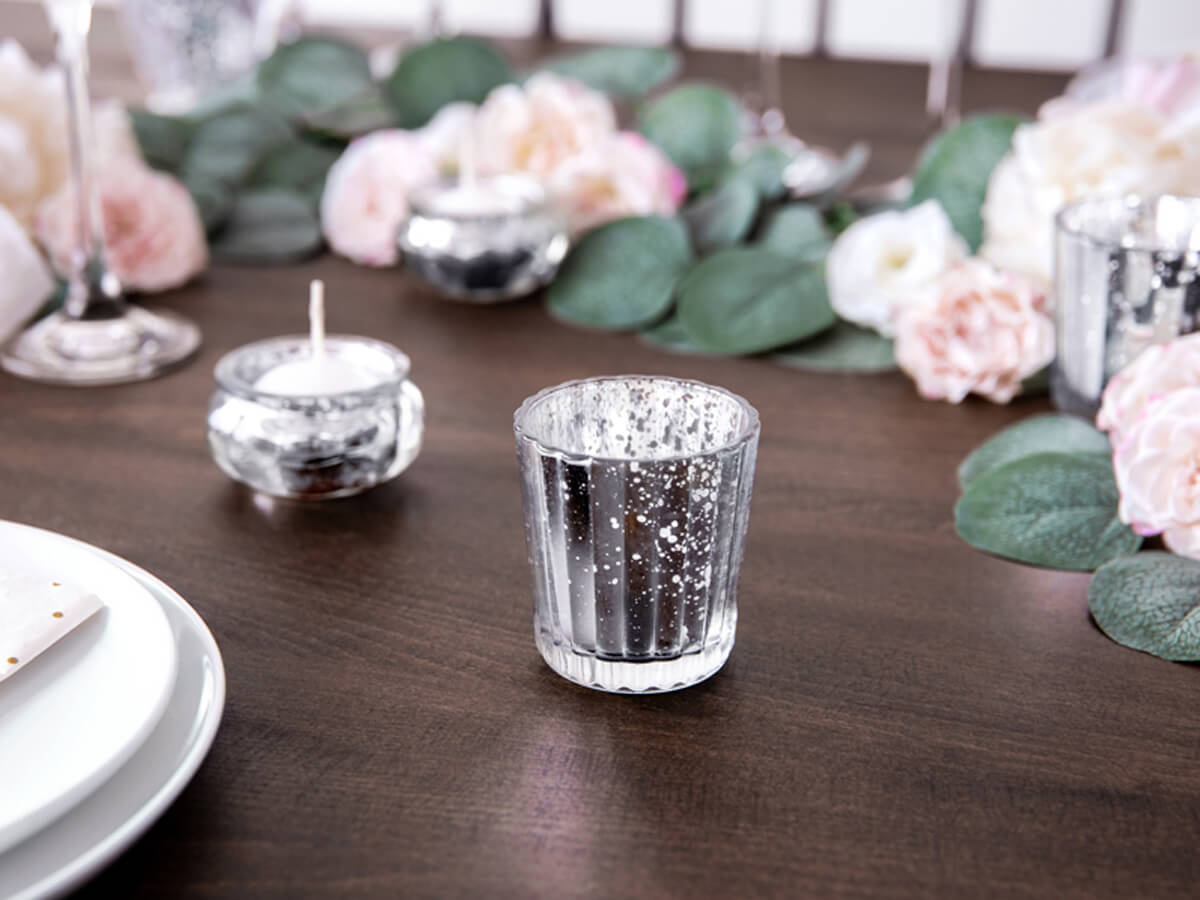 Üveg gyertyatartók - ezüst - 6 cm - 4 db.